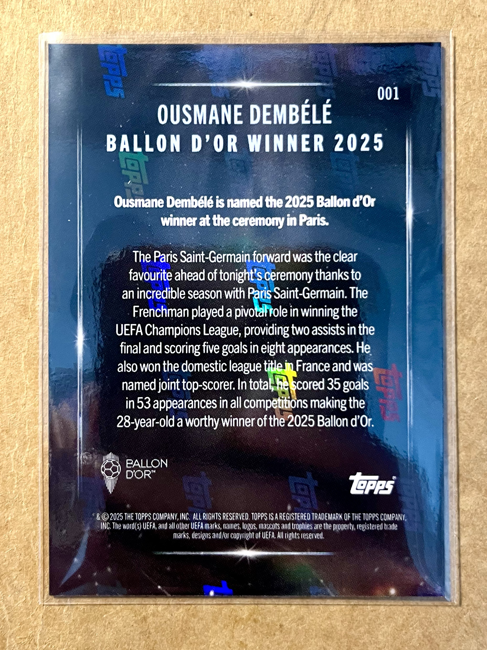 2025 Topps 【蓝矿】 Ousmane Dembélé 奥斯曼·登贝莱 Topps now系列 2025男足金球奖 法甲 巴黎圣日耳曼 当梦想照进现实!