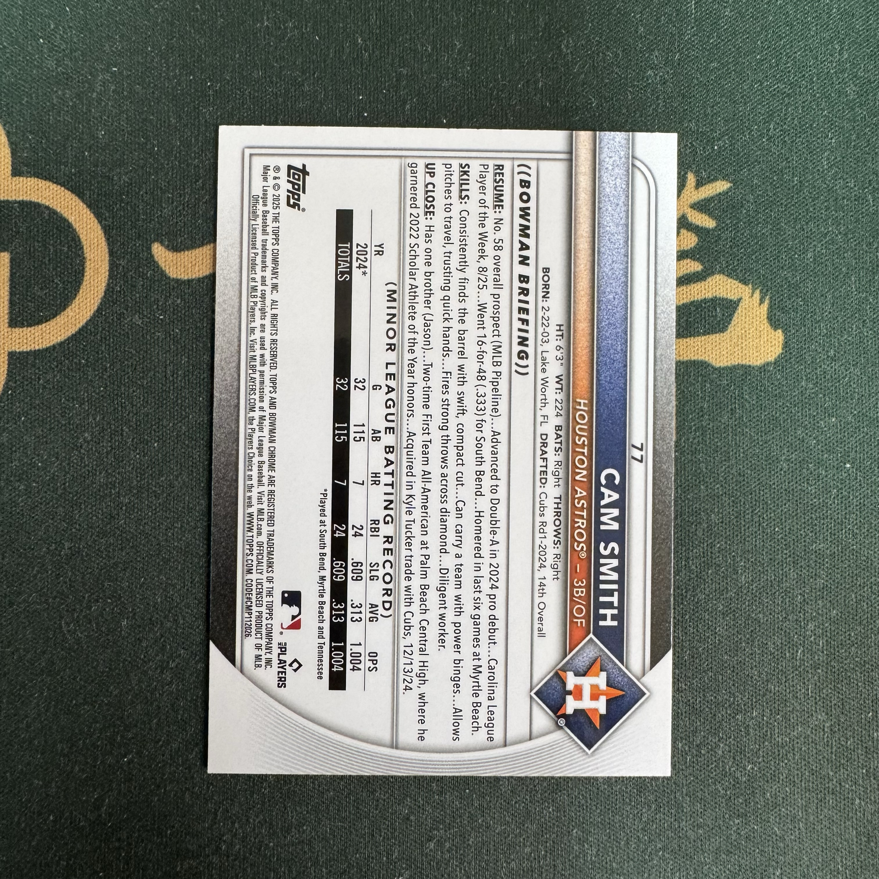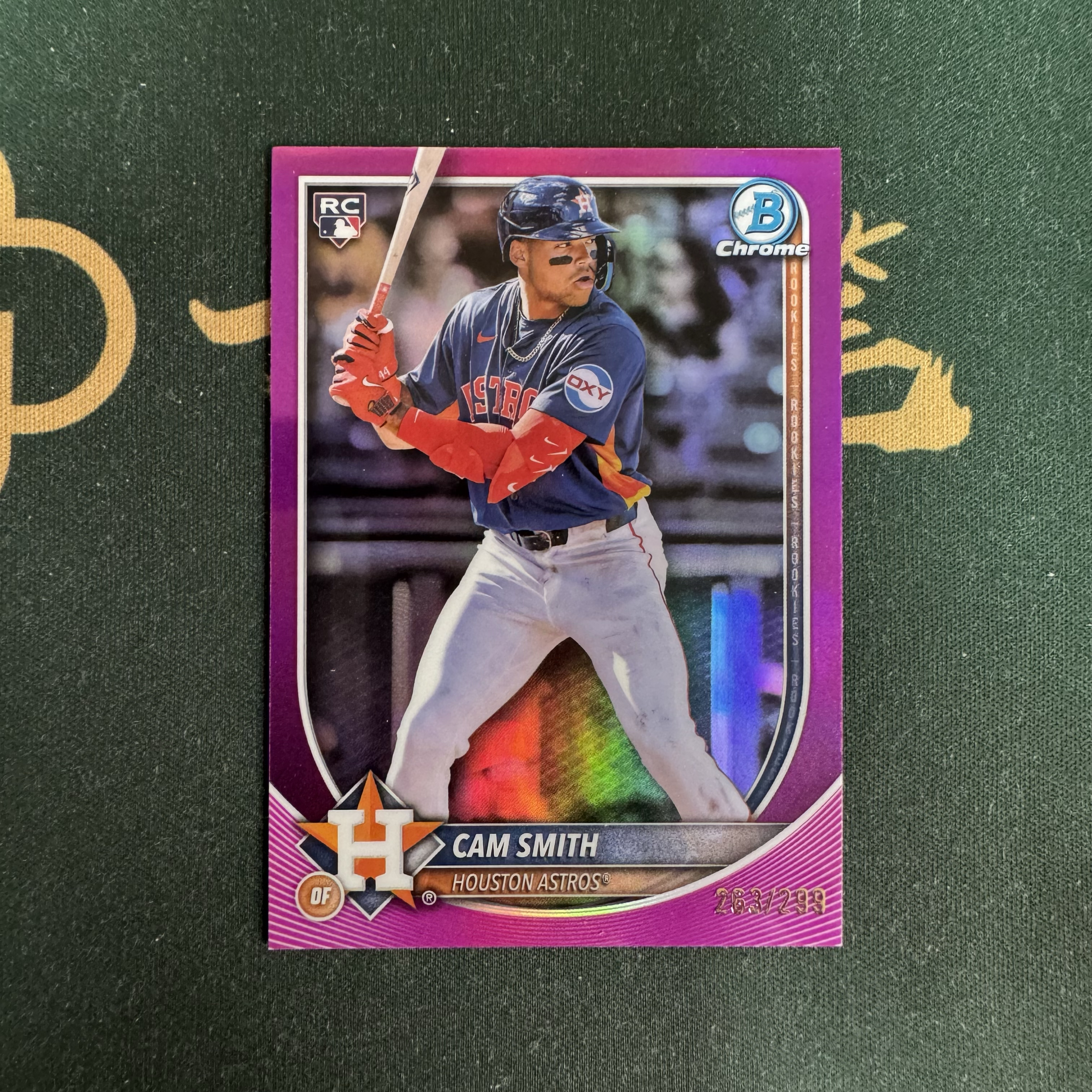 2025 Topps Chrome Cam Smith RC 【十三笔】Chrome Bowan RC 新秀 卡姆 史密斯 太空人队 299编 粉折 卡品如图(YY)