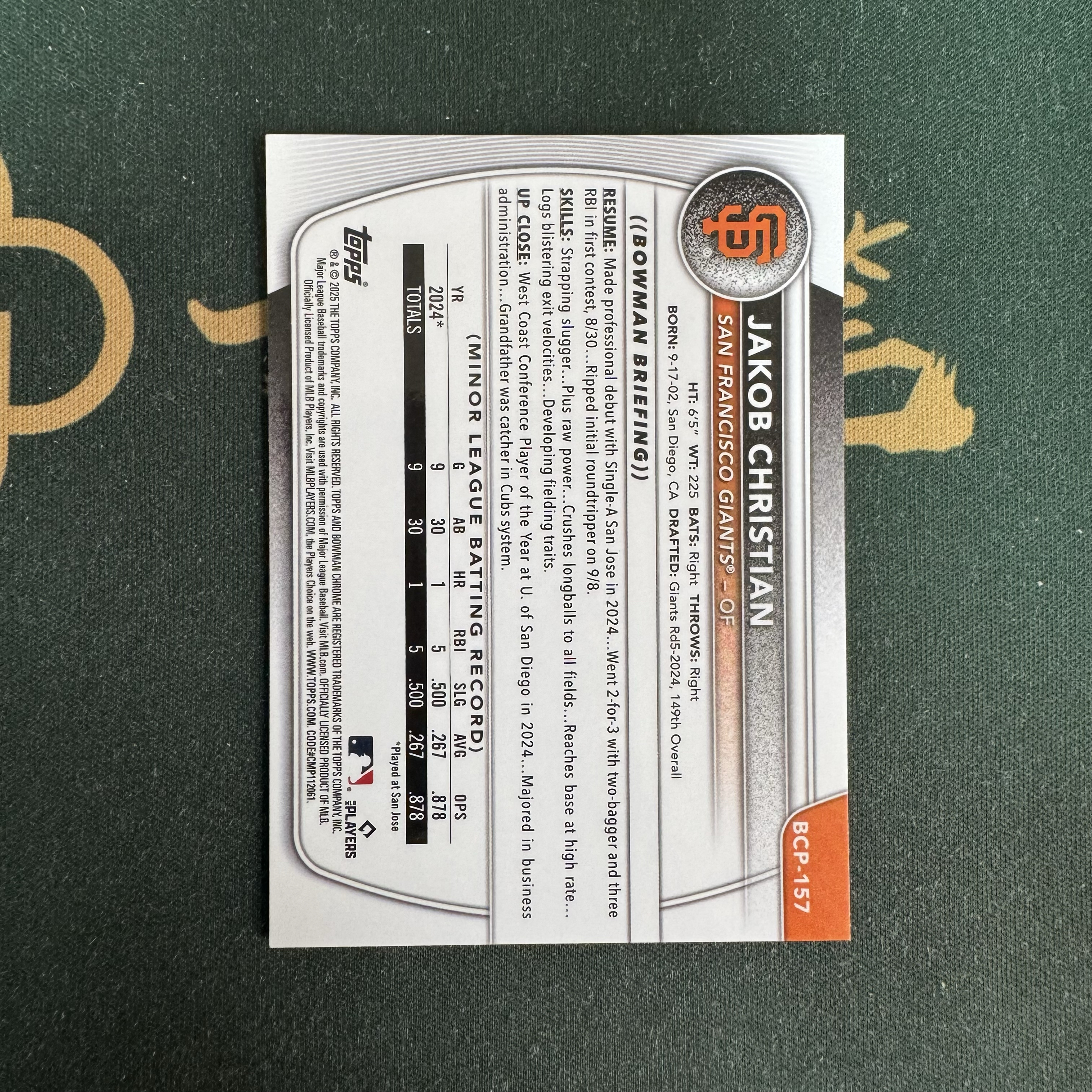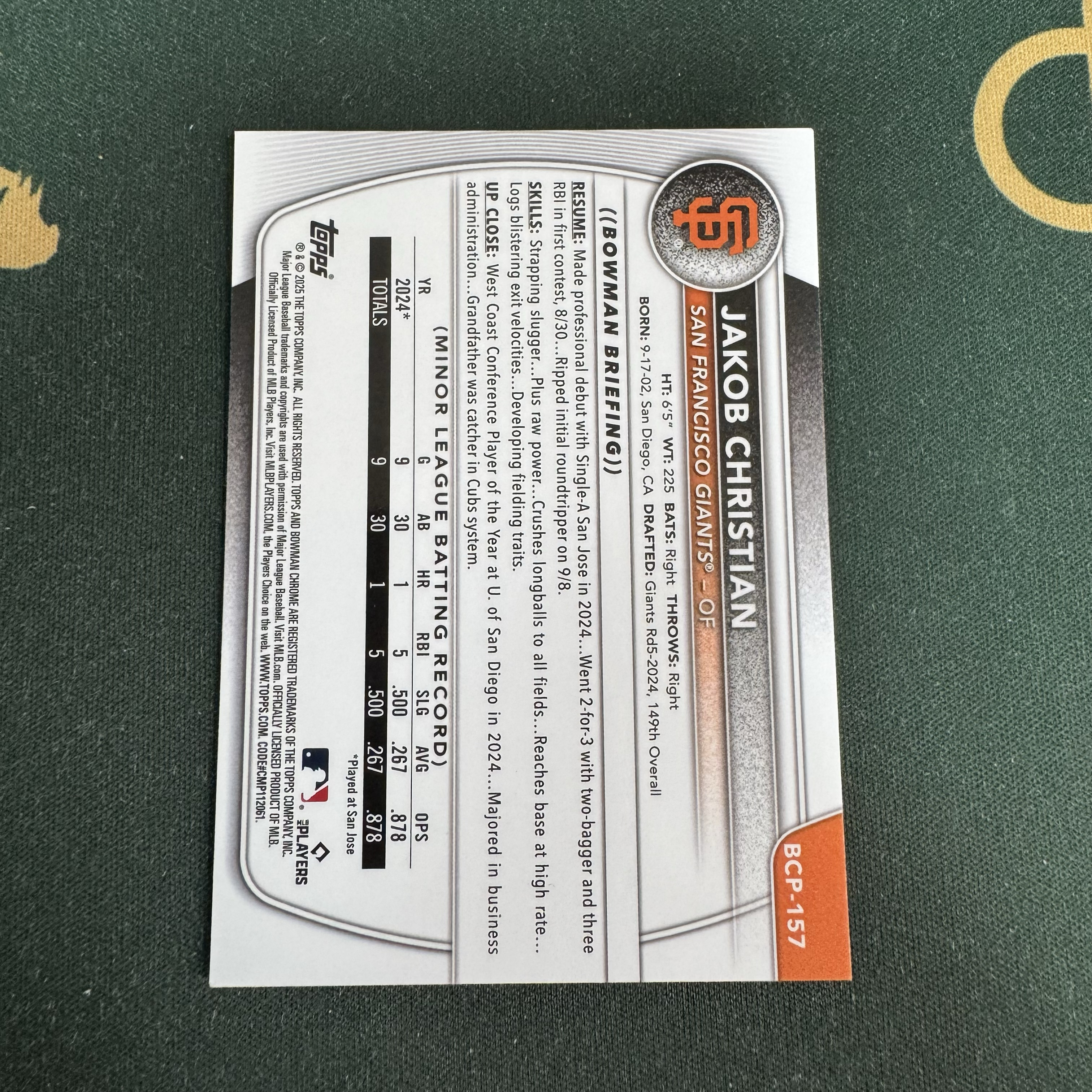 2025 Topps Chrome Jakob Christian 【十三笔】Chrome Bowan 1st Jakob Christian 巨人队 299编  粉棱镜折 卡品如图(YY)