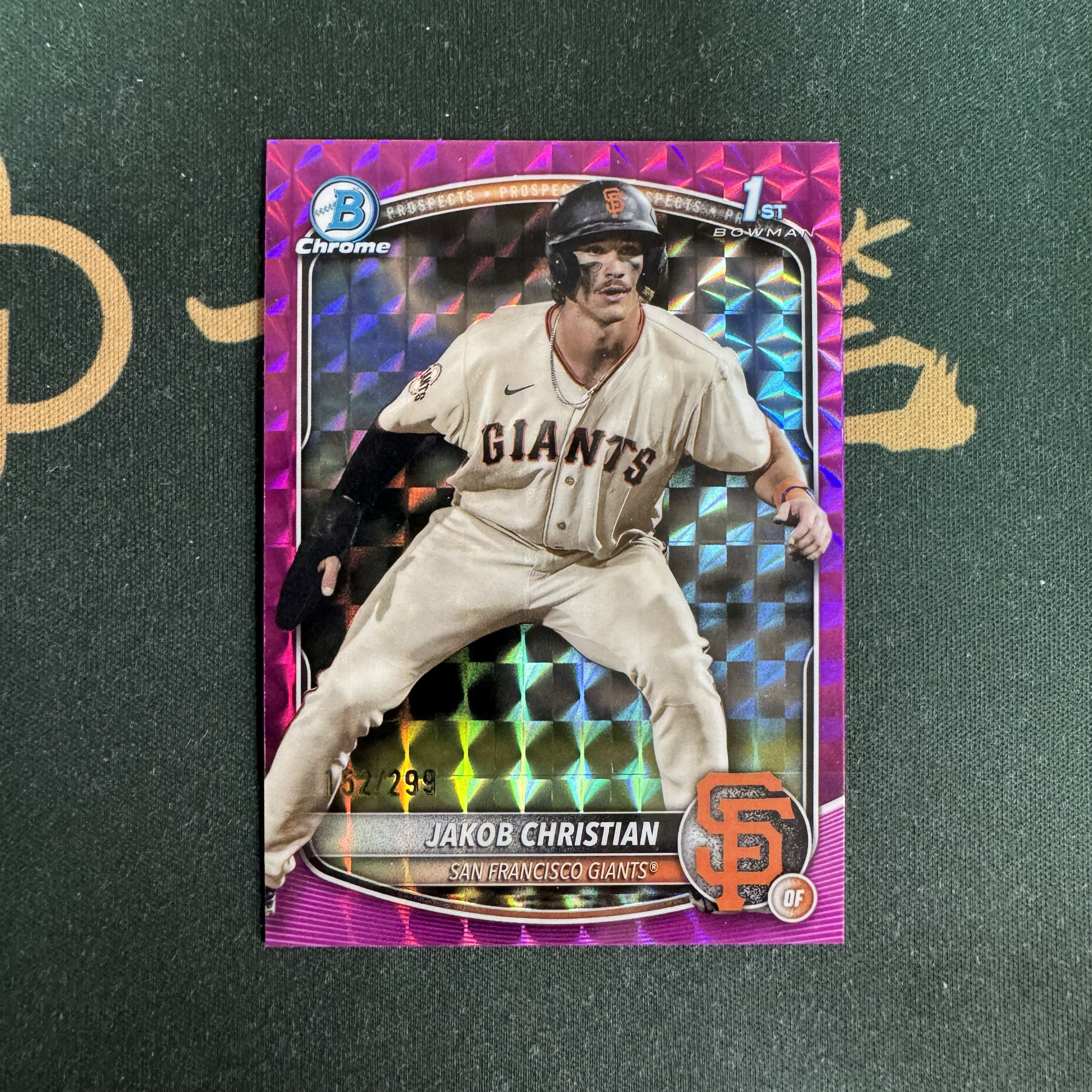 2025 Topps Chrome Jakob Christian 【十三笔】Chrome Bowan 1st Jakob Christian 巨人队 299编 粉棱镜折 卡品如图(YY)