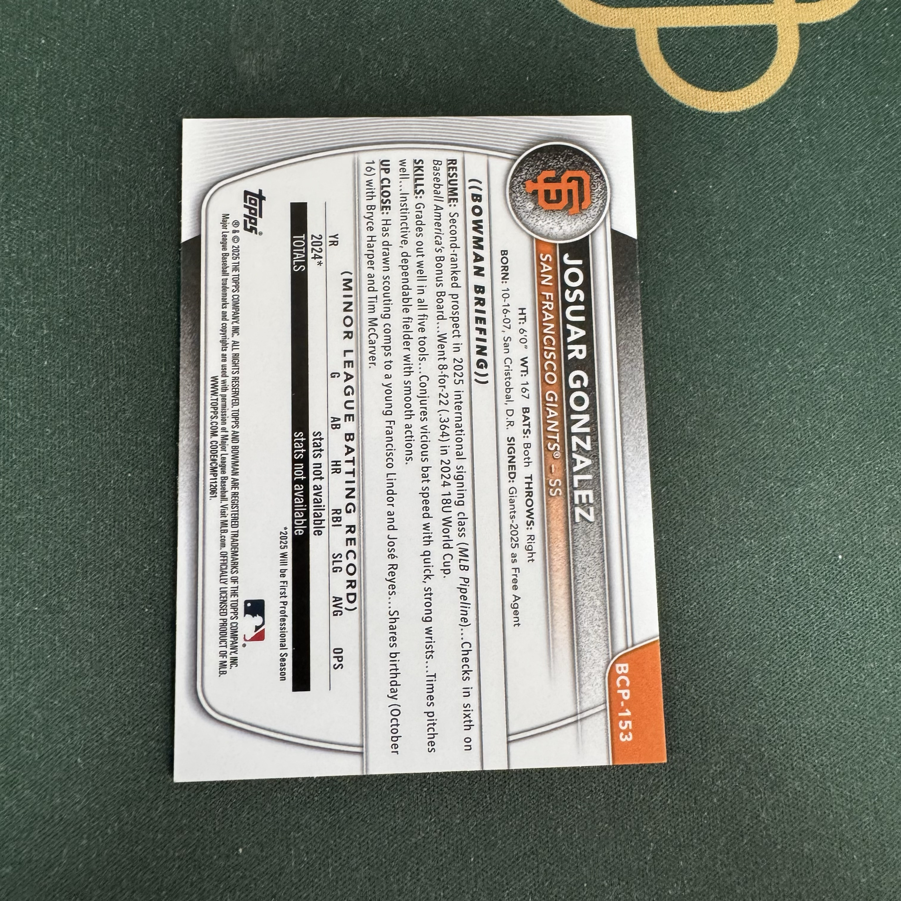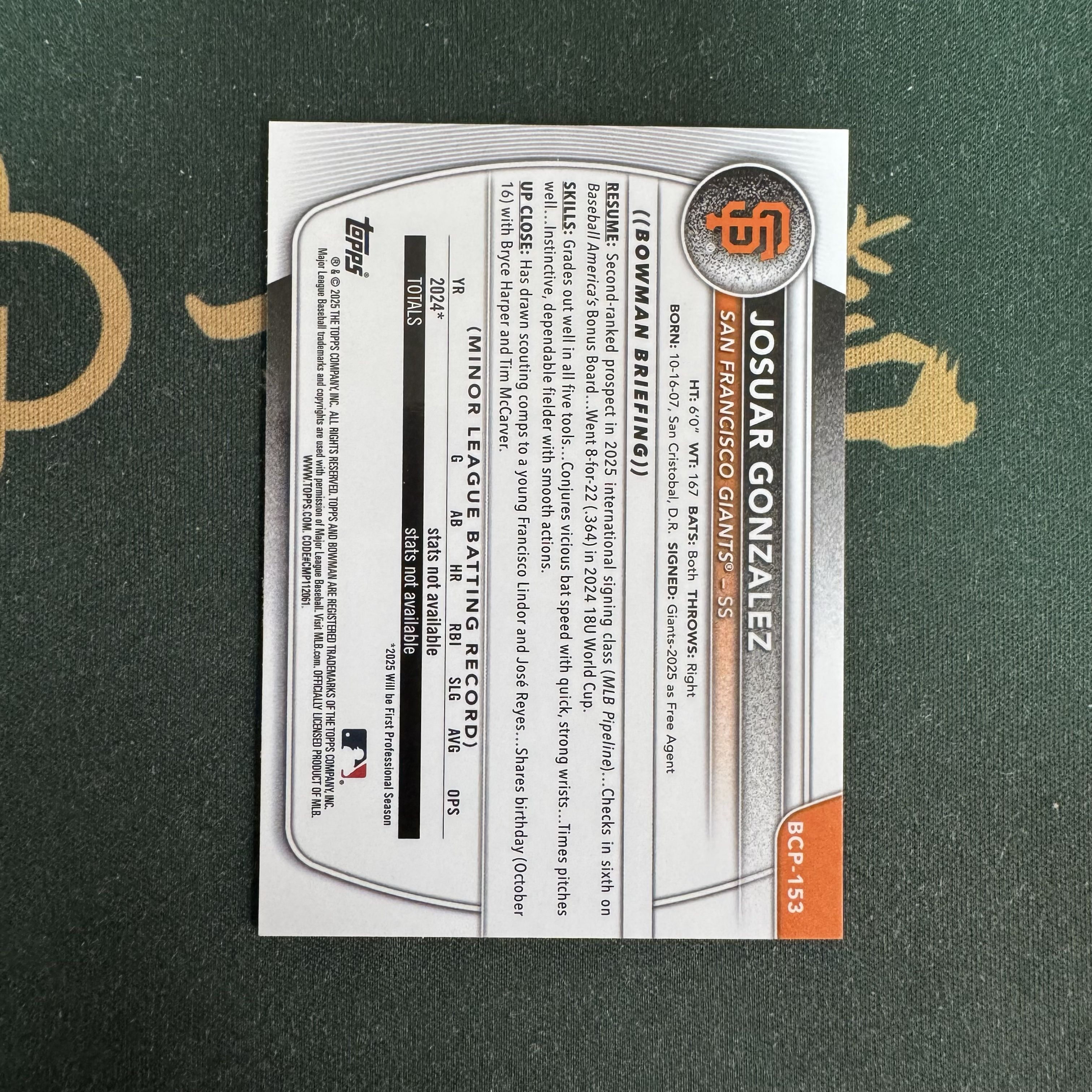 2025 Topps Chrome Josuar Gonzalez 【十三笔】Chrome Bowan 1st Josuar Gonzalez 巨人队 299编 粉棱镜折 卡品如图(YY)