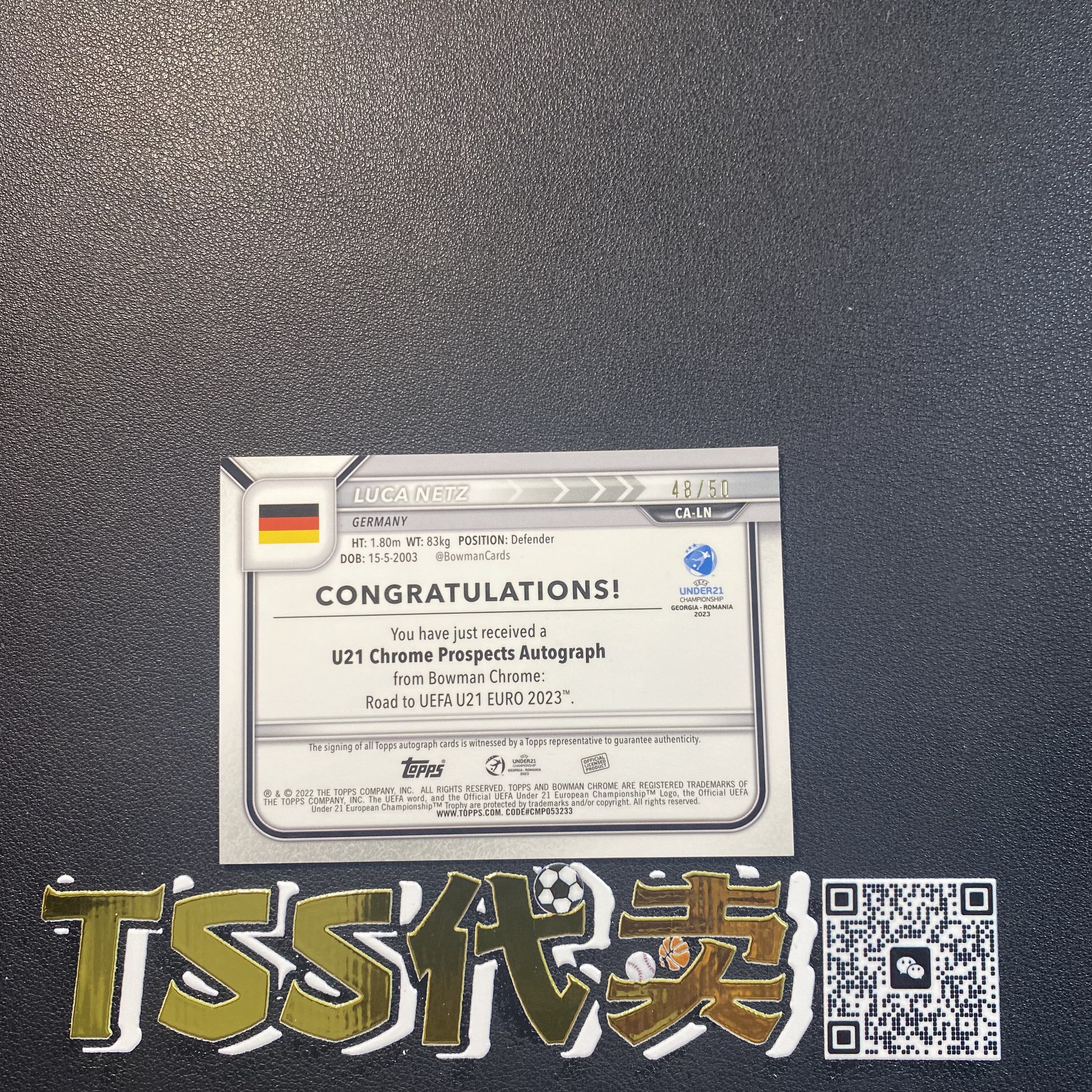 2022 Topps Bowman Luca Netz 【TSS代卖-预付80%】欧青赛 德国 卢卡 内茨  /50编 签字  金微光折  JH4370 ZGK55-陳