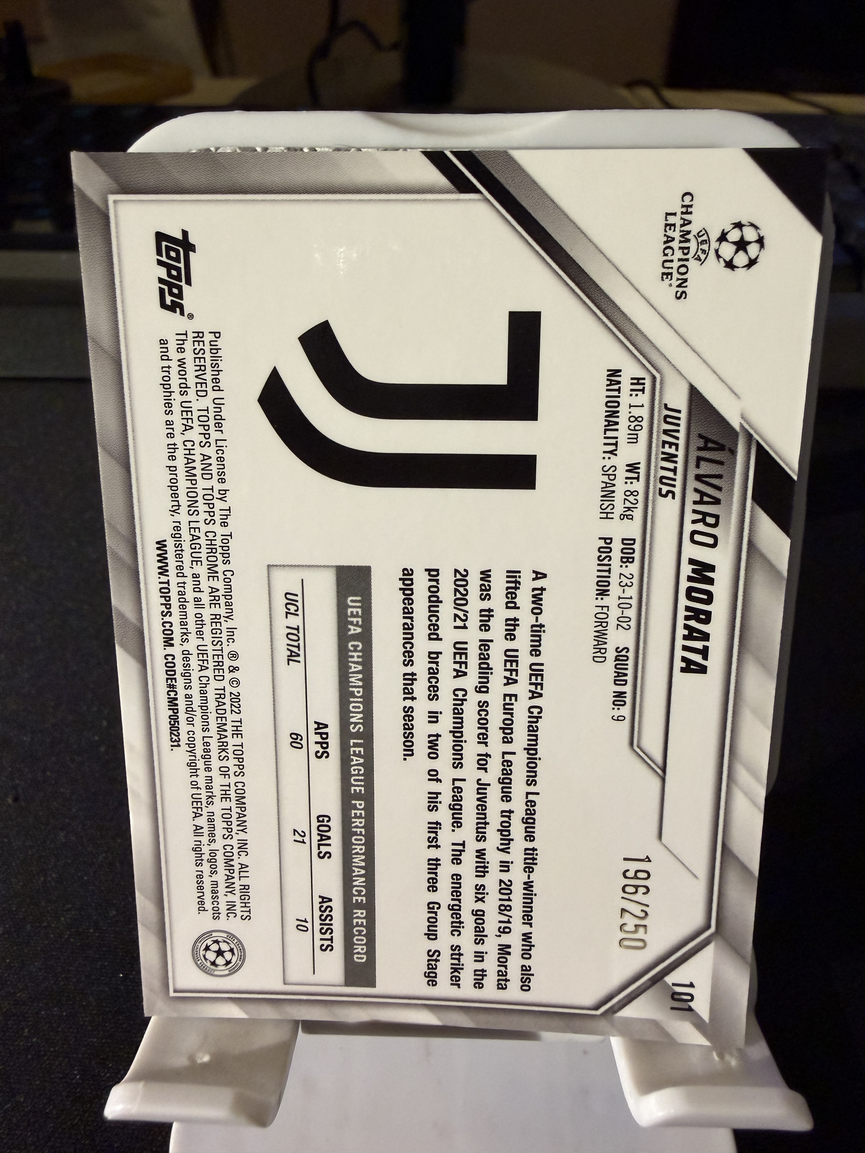 2021-22 Topps Chrome Alvaro Morata 欧冠 TC 莫拉塔 250编 紫折 尤文图斯 马竞 西班牙 卡品如图 (jojo7818)