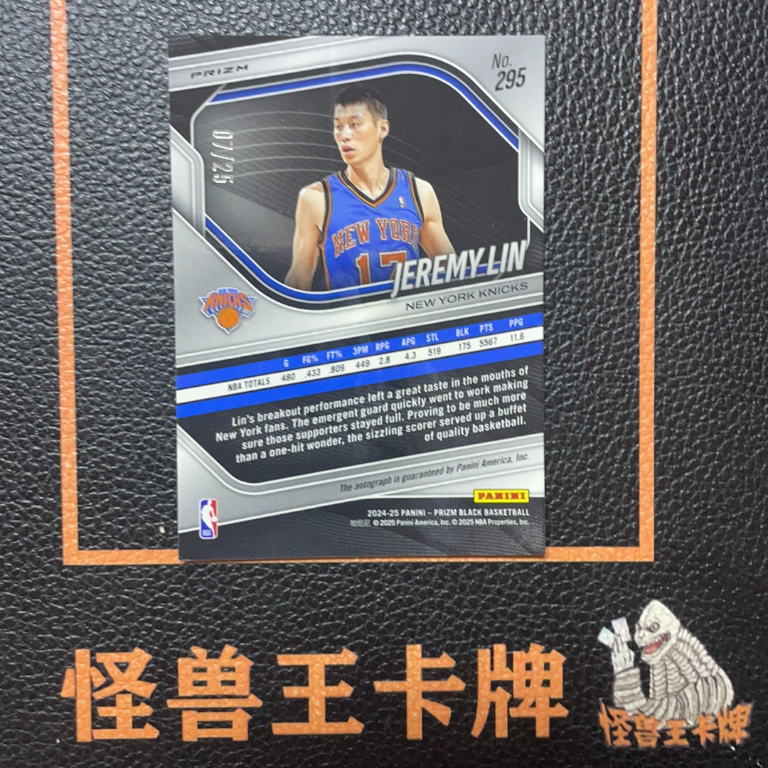 (怪兽拍卖) GSW-D05 2024-25 Panini Prizm Black Jeremy Lin 林书豪 尼克斯 折射 蓝shimmer折 25编 签字 球队同色