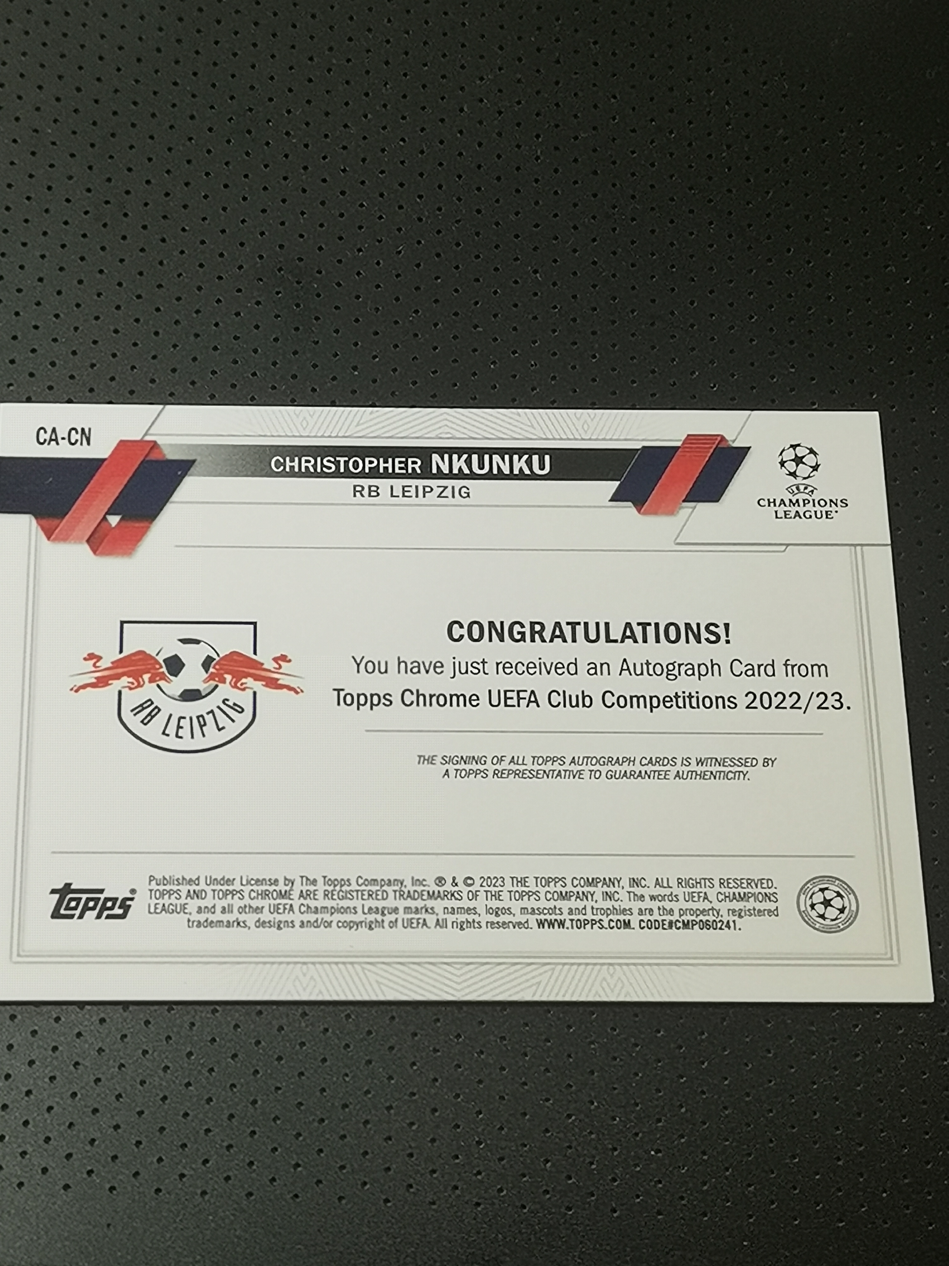 2022-23 Topps Chrome Christopher Nkunku 欧冠 莱比锡红牛 恩昆库 签字 银折射 切尔西 AC米兰 法国🇫🇷FRANCE
