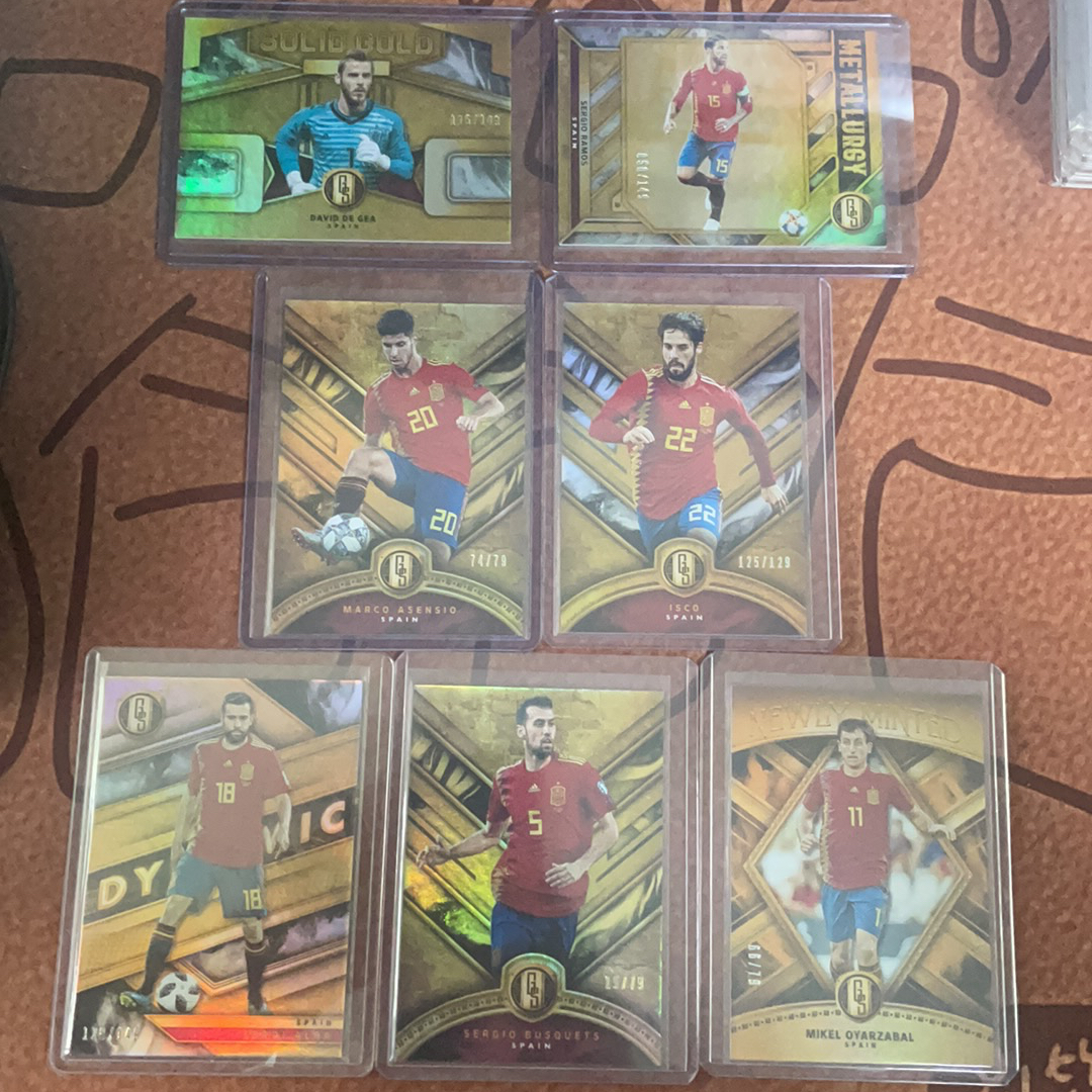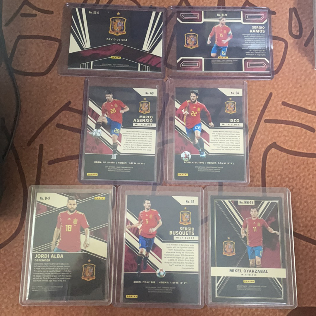 2019-20 Panini Gold Standard Spain 金砖 元年 西班牙 7张lot 德赫亚 拉莫斯 阿森西奥 伊斯科 阿尔巴 布斯克茨 奥亚萨瓦尔 79/129/149编 (么)
