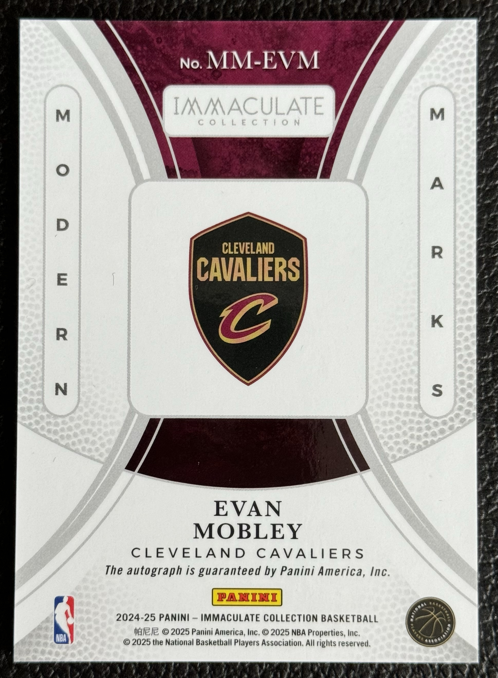 2024-25 Panini Immaculate Collection Evan Mobley 【九九代拍】骑士 埃文 莫布利 imm 签字 卡签 99编 瑕疵如图 收藏必备 GT