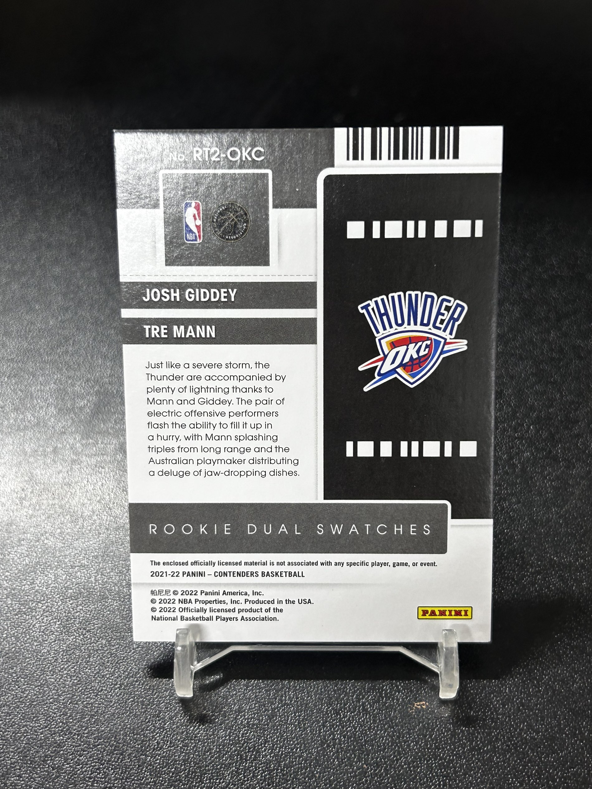 【浩行拍卖 截标预付82%】2021-22 panini contenders 球票 雷霆 约什 吉迪 基迪 特雷 曼恩 rc 新秀 双人 球衣 物料 专收必备「苏区」1014D05張