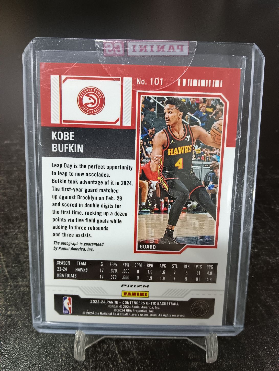 【浩行拍卖 截标预付82%】2023-24 panini Contenders Optic Kobe Bufkin 球票 老鹰 科比 巴夫金 新秀 rc 银折 折射 签字 卡签 专收必备「钟爱」1014A03牟