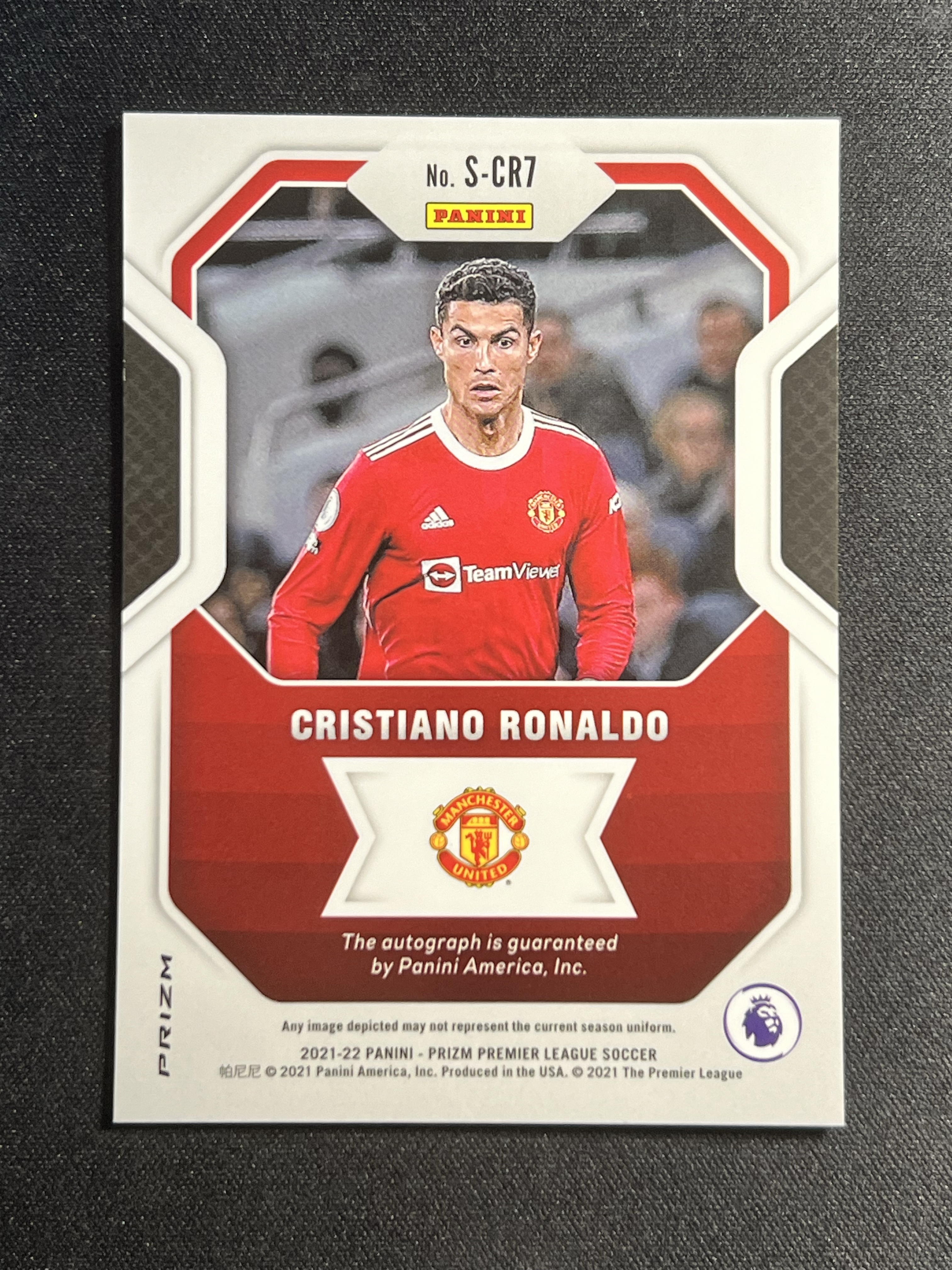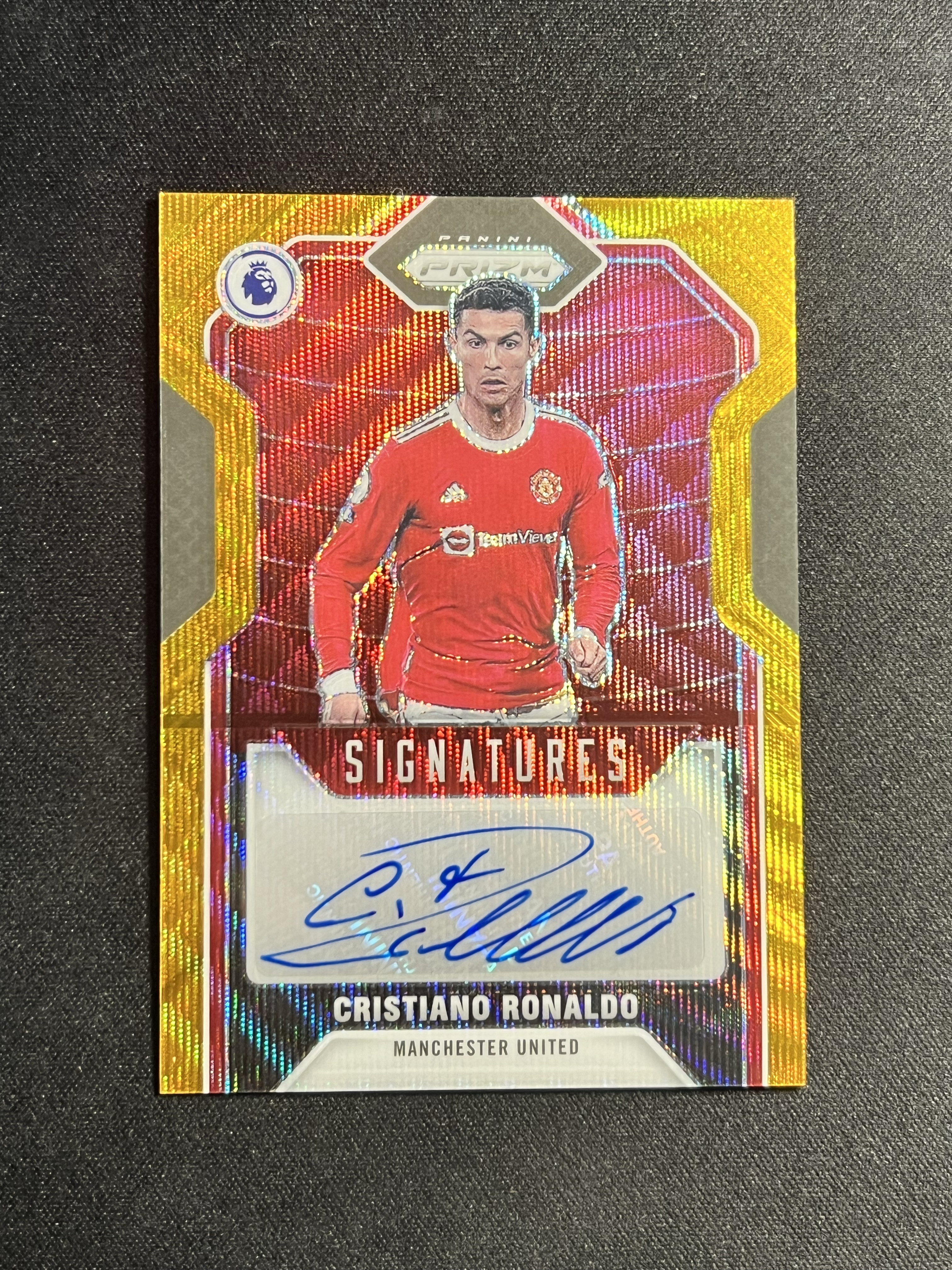 2021-22 Panini Prizm Cristiano Ronaldo 英超PZ c罗 超大比例金波纹折 完美签字,卡品不错。曼联,葡萄牙,皇马/皇家马德里,尤文图斯。梅西劲敌。【枪王拍卖】