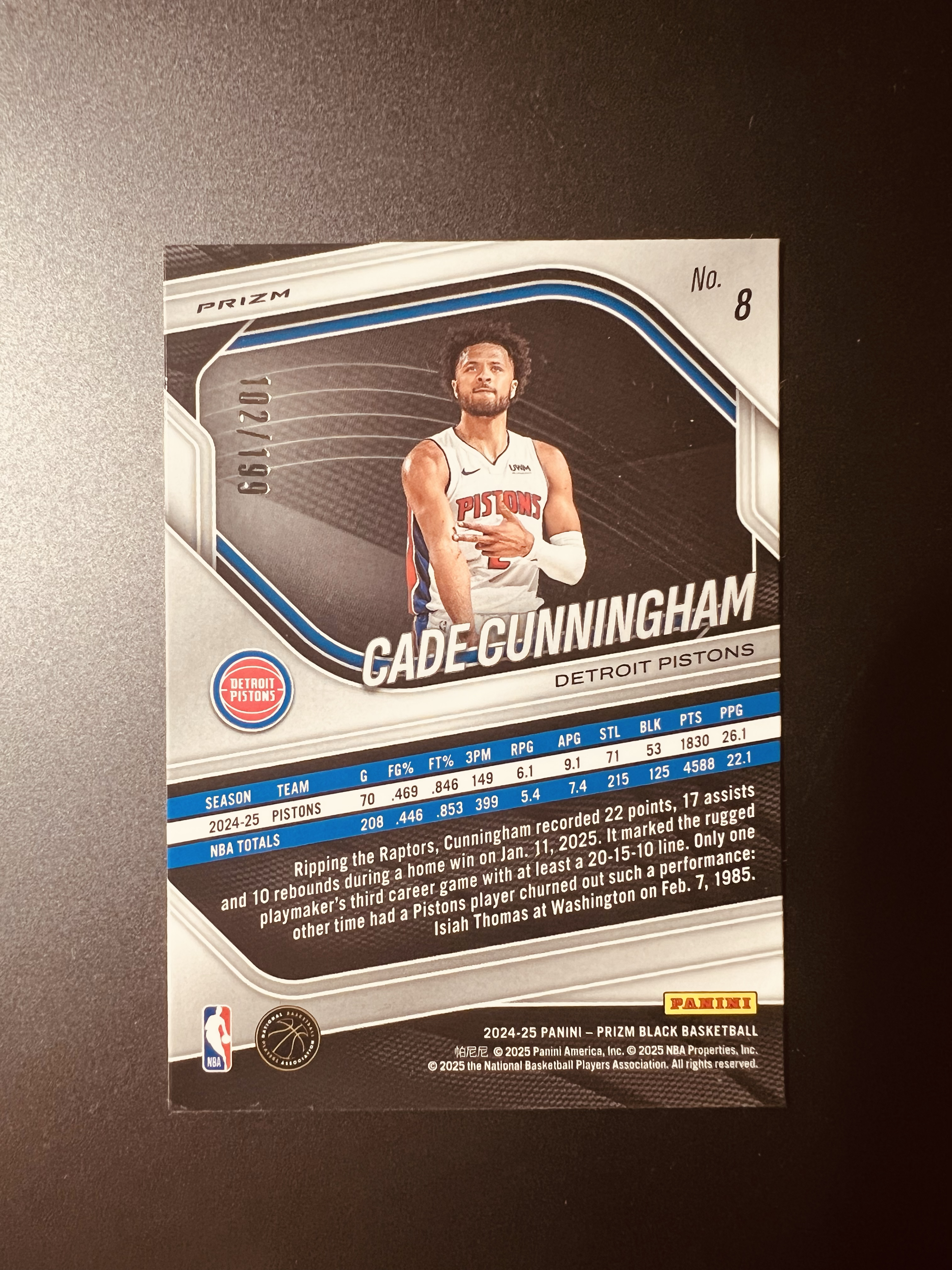 2024-25 Panini Prizm Black Cade Cunningham pz 活塞 凯德 坎宁安 CC 康宁汉姆 折射 蓝碎冰 102/199编 招牌动作 未来可期 凑套 收藏必备
