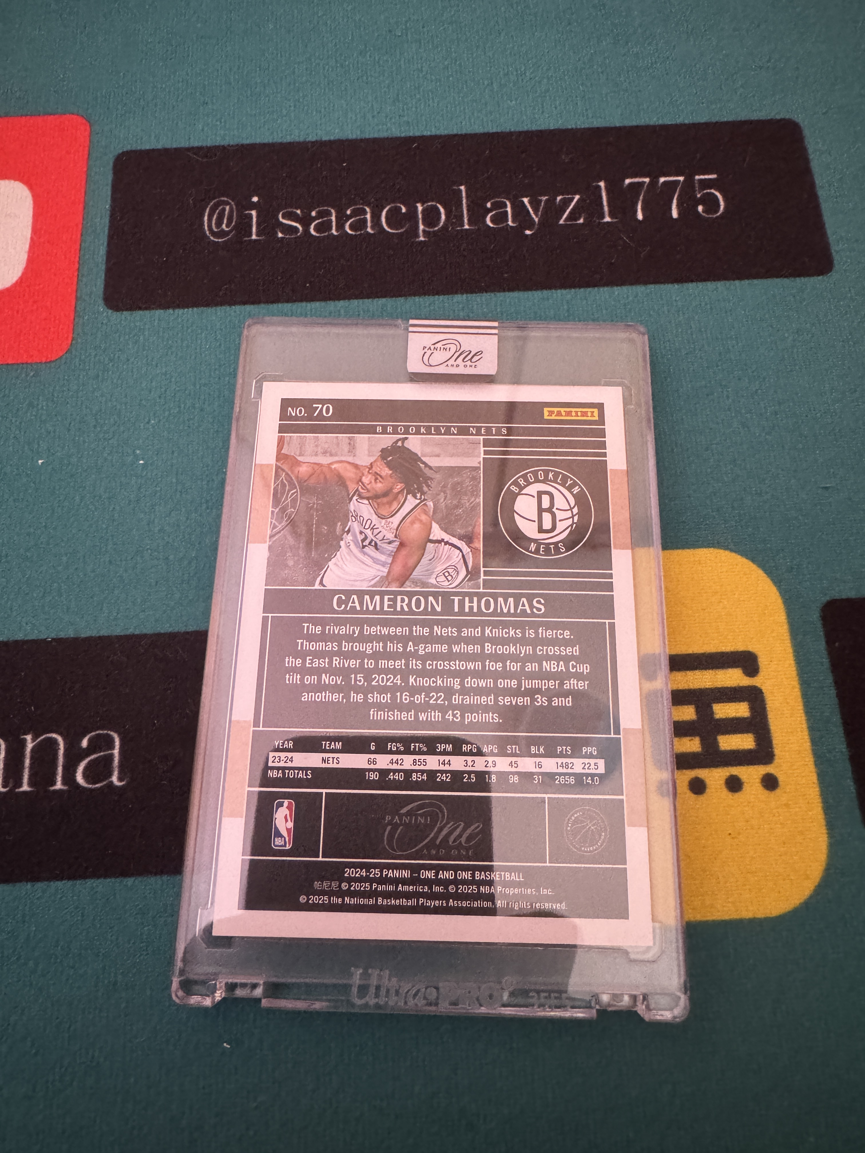 2024-25 Panini One and One Cameron Thomas 卡梅伦 托马斯 篮网 /49编 橙折 原封砖 收藏必备 瑕疵如图