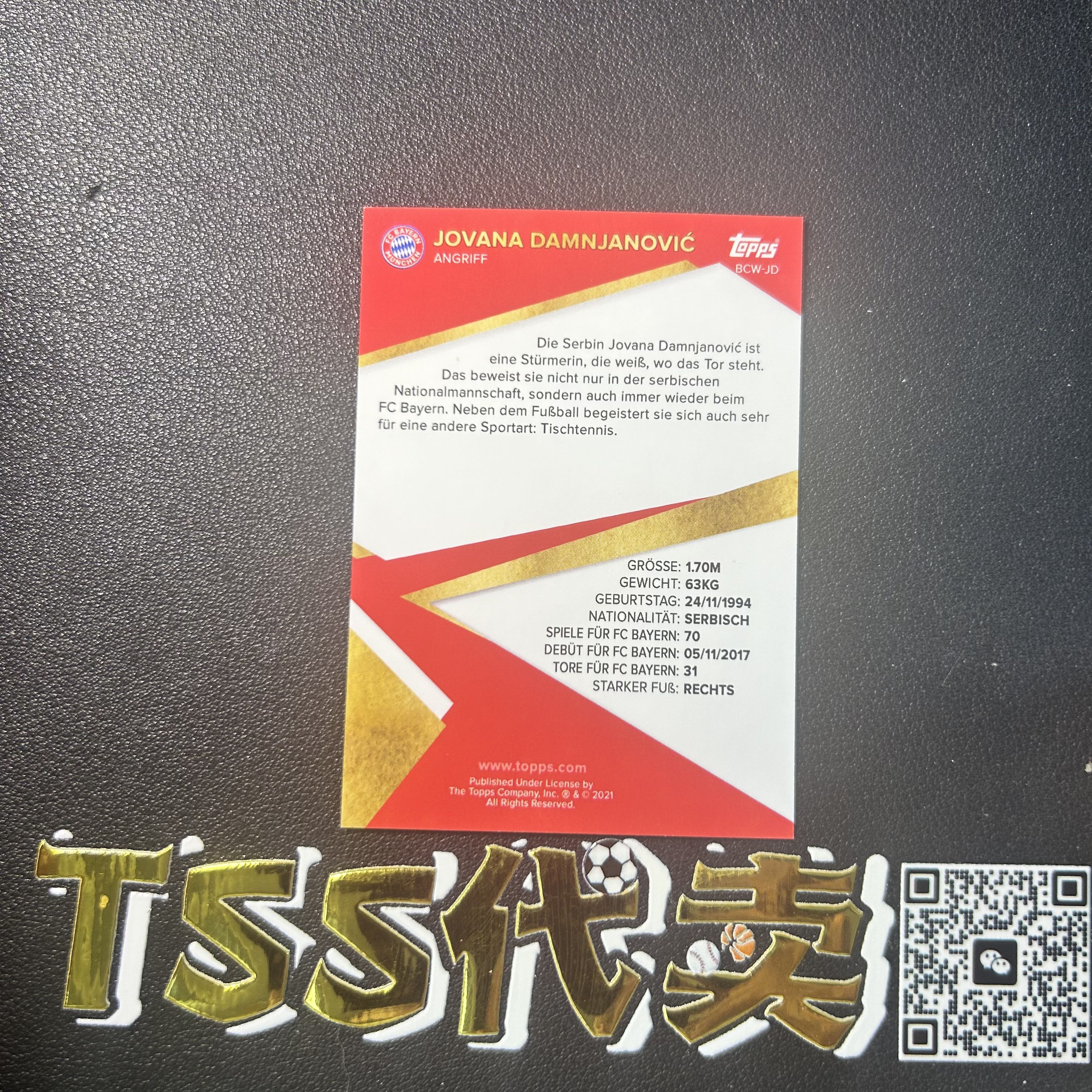 2021 Topps 拜仁队盒 Jovana Damnjanović 【TSS代卖-预付80%】拜仁慕尼黑 约瓦纳 达姆亚诺维奇   /99编  粉折 JH4326 ZK53-陳