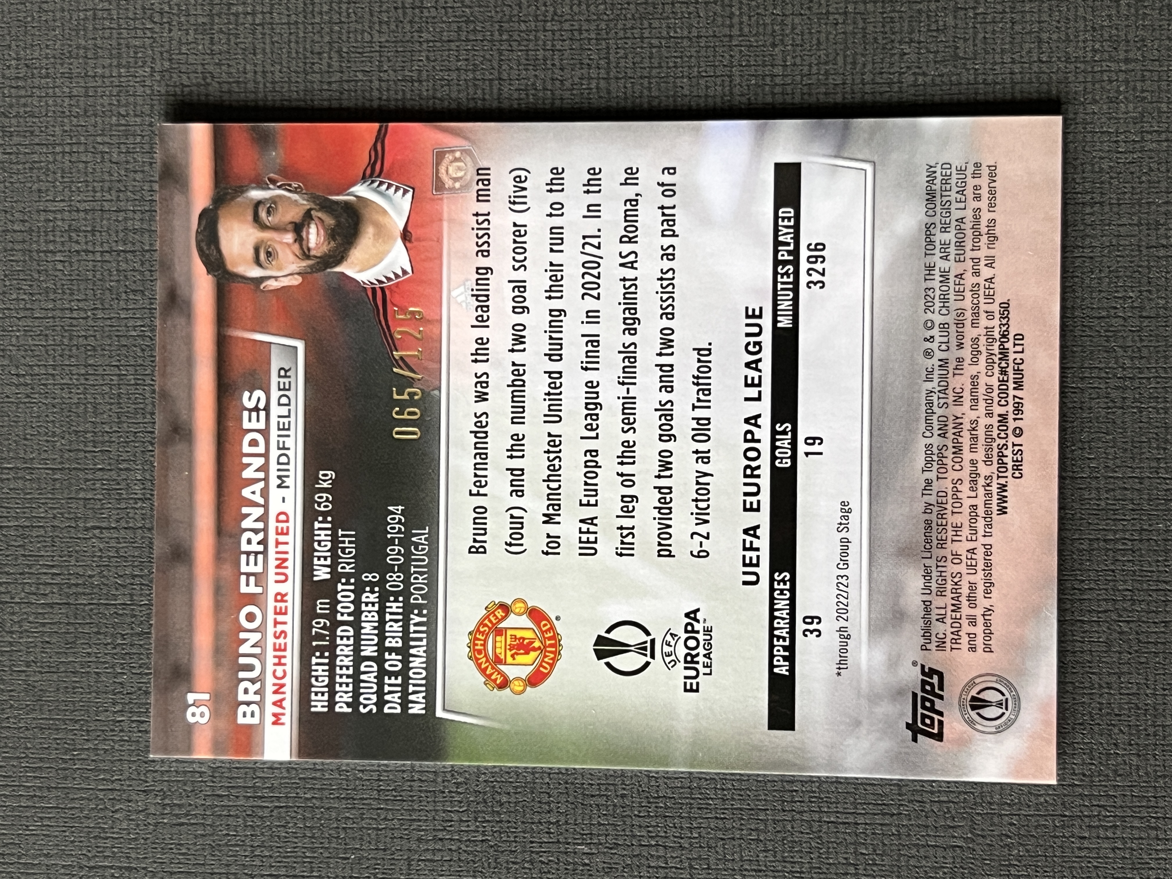 2023 Topps Stadium Club Chrome Bruno Fernandes 欧冠竞技场 B费 布鲁诺费尔南德斯 曼联 葡萄牙 base 绿闪电折 /125编