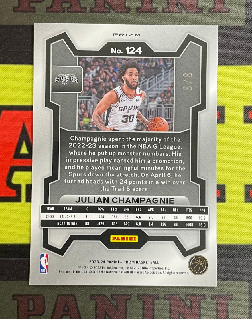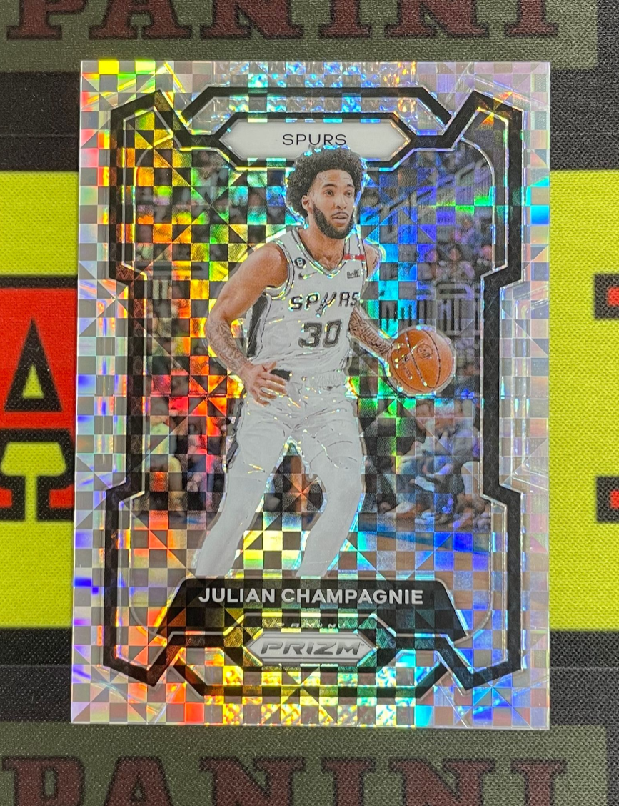 【算盘拍卖】2023-24 Panini Prizm Julian Champagnie 马刺现役奇才队 朱利安 尚帕尼 pz系列 8/8尾编 幸运信封 银格子折 棋盘折 折射 专收凑套必备