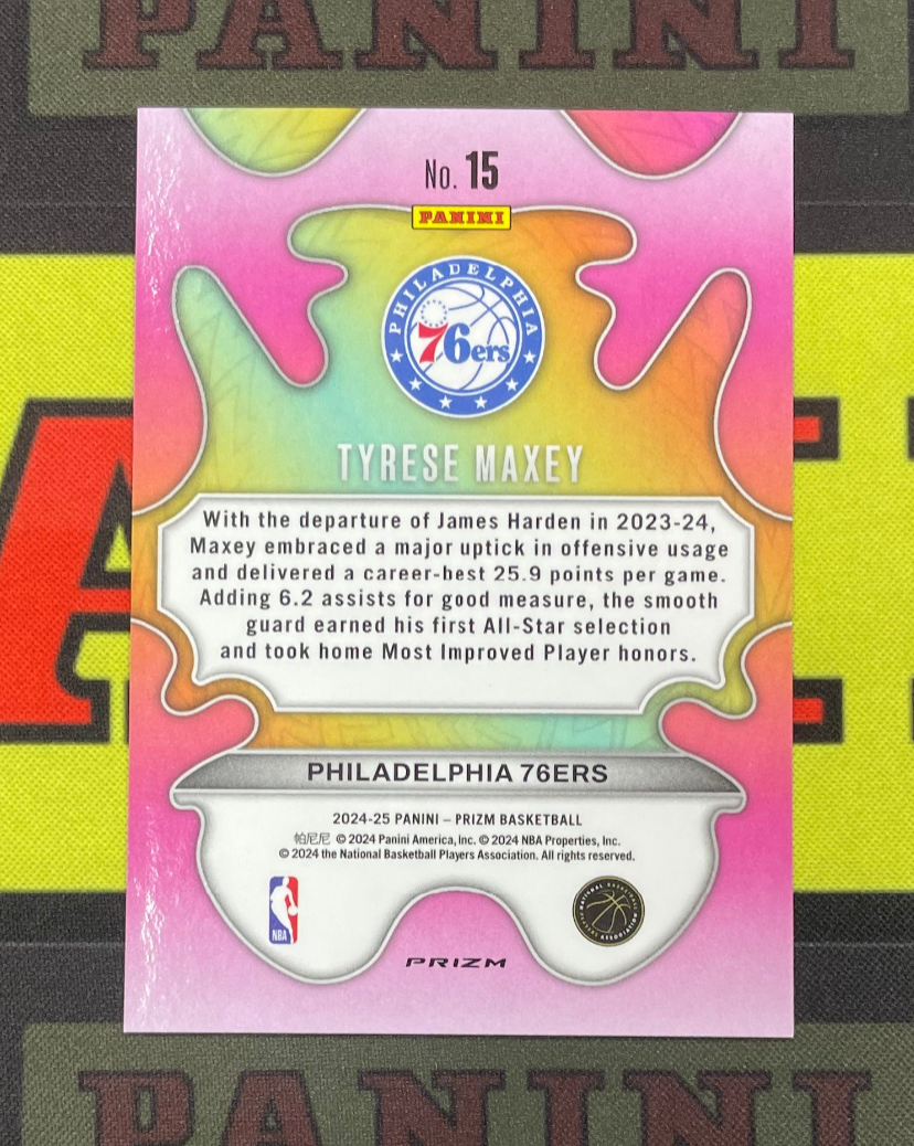 【算盘拍卖】2024-25 Panini Prizm Tyrese Maxey 费城76人队 当家球星 泰瑞斯 马克西 pz系列 Groovy 时髦特卡 银折 折射 大比例 ssp 专收凑套必备(浪宝)