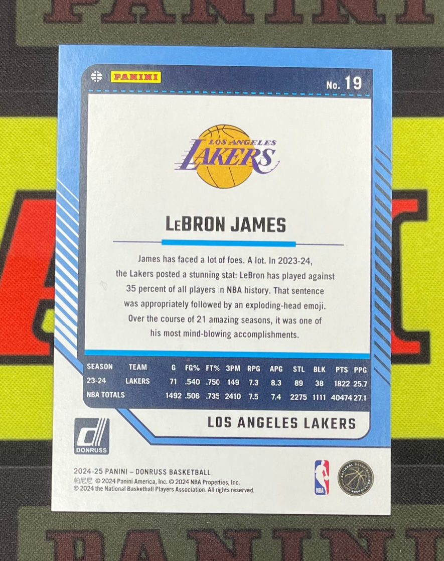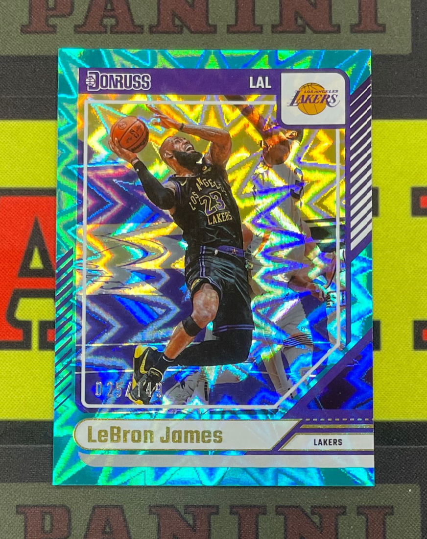 【算盘拍卖】2024-25 Panini Donruss LeBron James 湖人队 超级巨星 老詹 詹皇 小皇帝 勒布朗 詹姆斯 杜蕾斯系列 025/149编 青爆炸折 折射 专收凑套必备(浪宝)