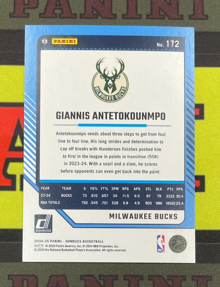 【算盘拍卖】2024-25 Panini Donruss Giannis Antetokounmpo 雄鹿 超级巨星 字母哥 扬尼斯 阿德托昆博 杜蕾斯系列 24/25编 金佛光折 折射 专收凑套必备(浪宝)