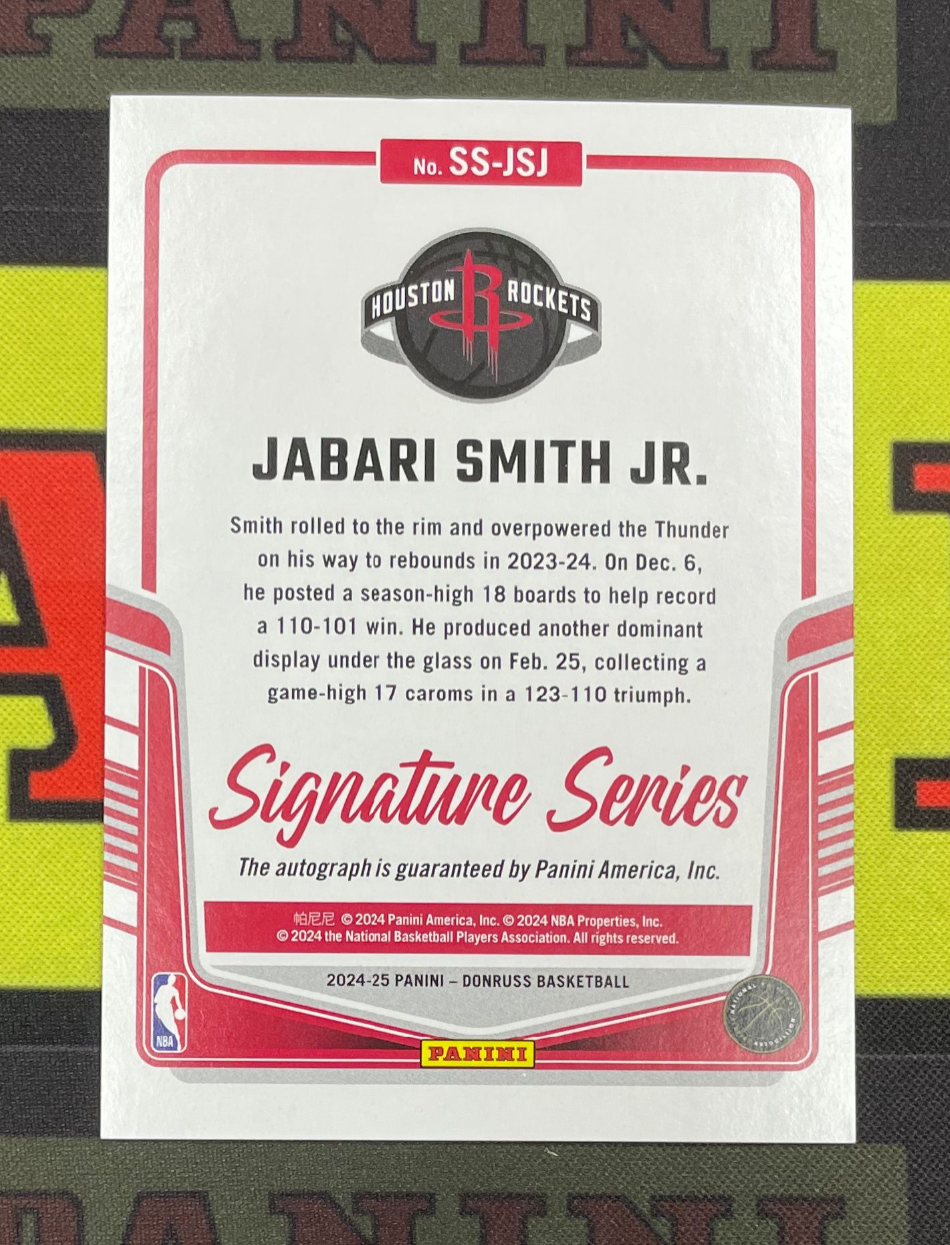 【算盘拍卖】2024-25 Panini Donruss Jabari Smith Jr. 休斯顿火箭队 小贾巴里史密斯 杜蕾斯系列 Signature Series特卡 银折 签字 折射 墨迹完美 专收凑套必备(浪宝)