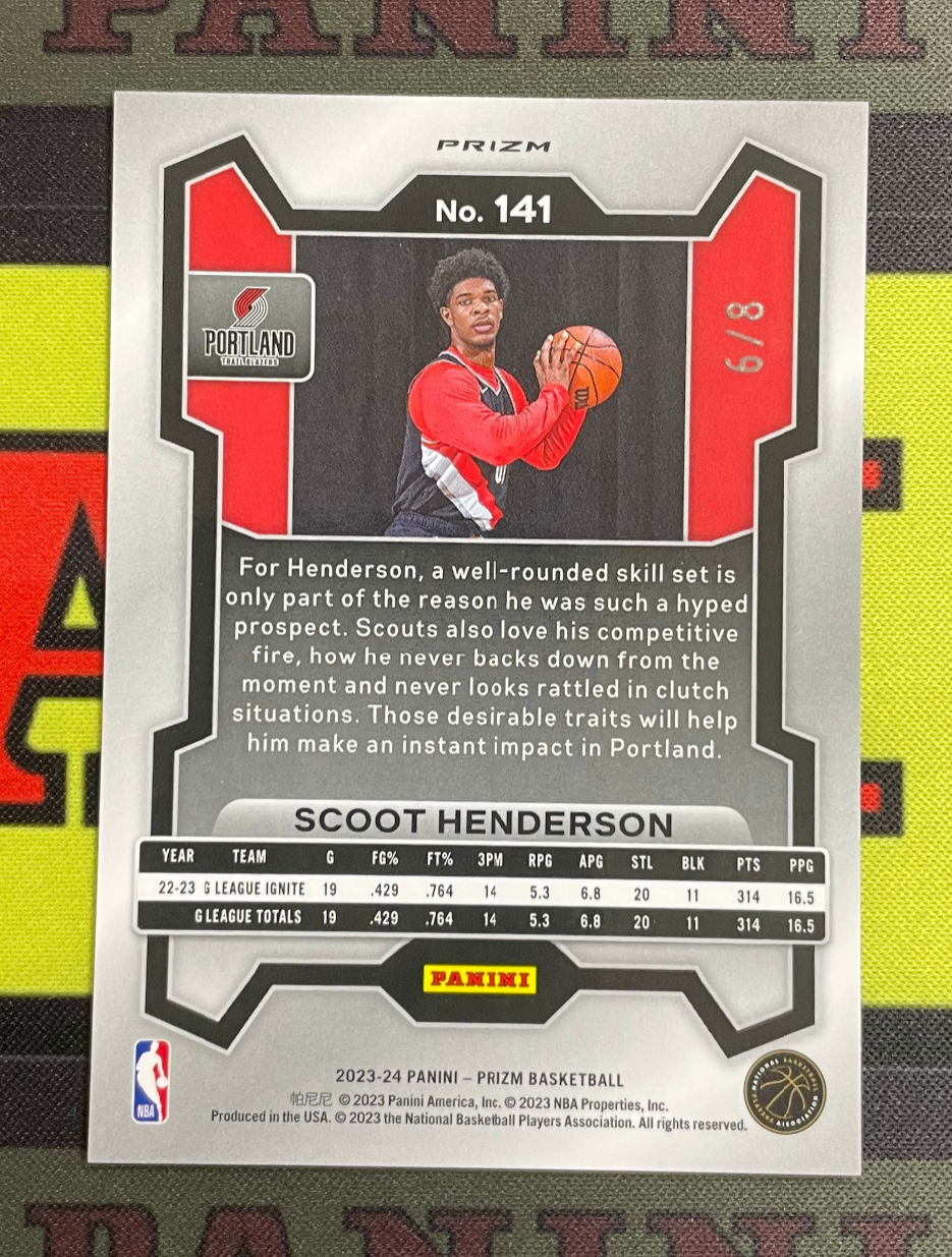 【算盘拍卖】2023-24 Panini Prizm Scoot Henderson RC 开拓者队 大热新秀 斯库特 亨德森 pz系列 6/8编 新秀幸运信封 银格子折 棋盘折 折射 专收凑套必备