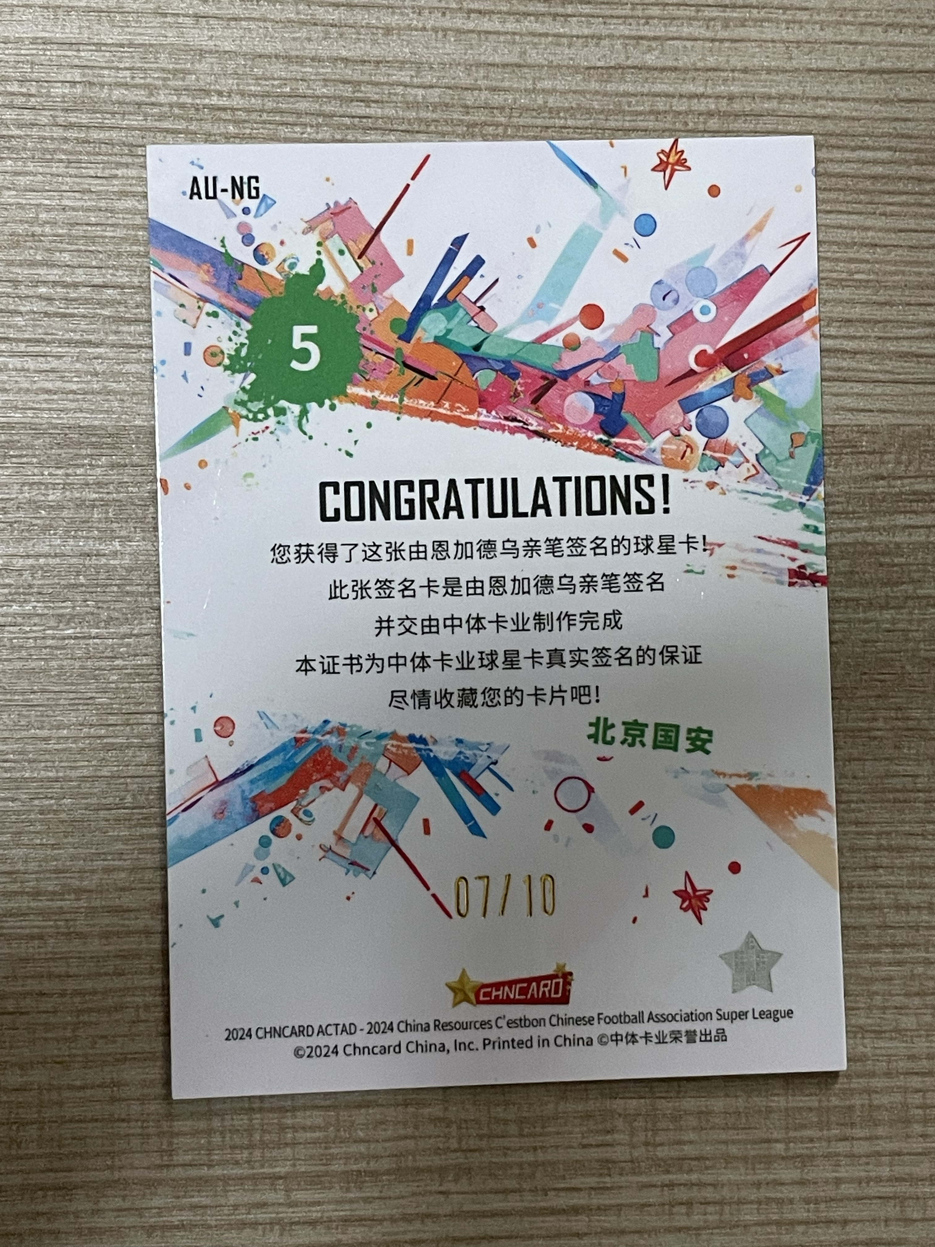 2024 中体卡业 CSL ACTAD(渲染) 北京国安 恩加德乌 10编 签字 金折 金波纹 超低编 箱hit 国足 中国体育 足协杯冠军有升值空间