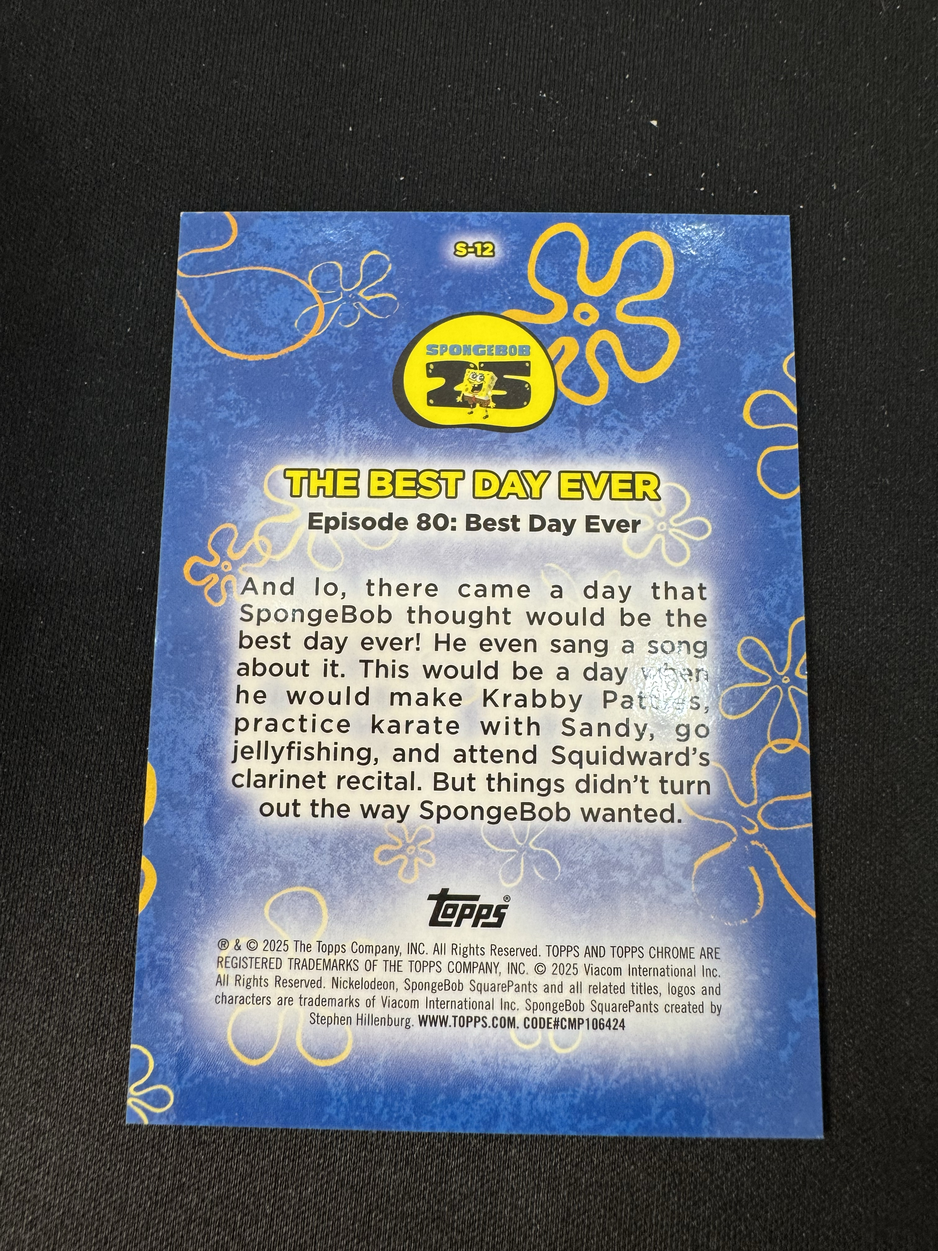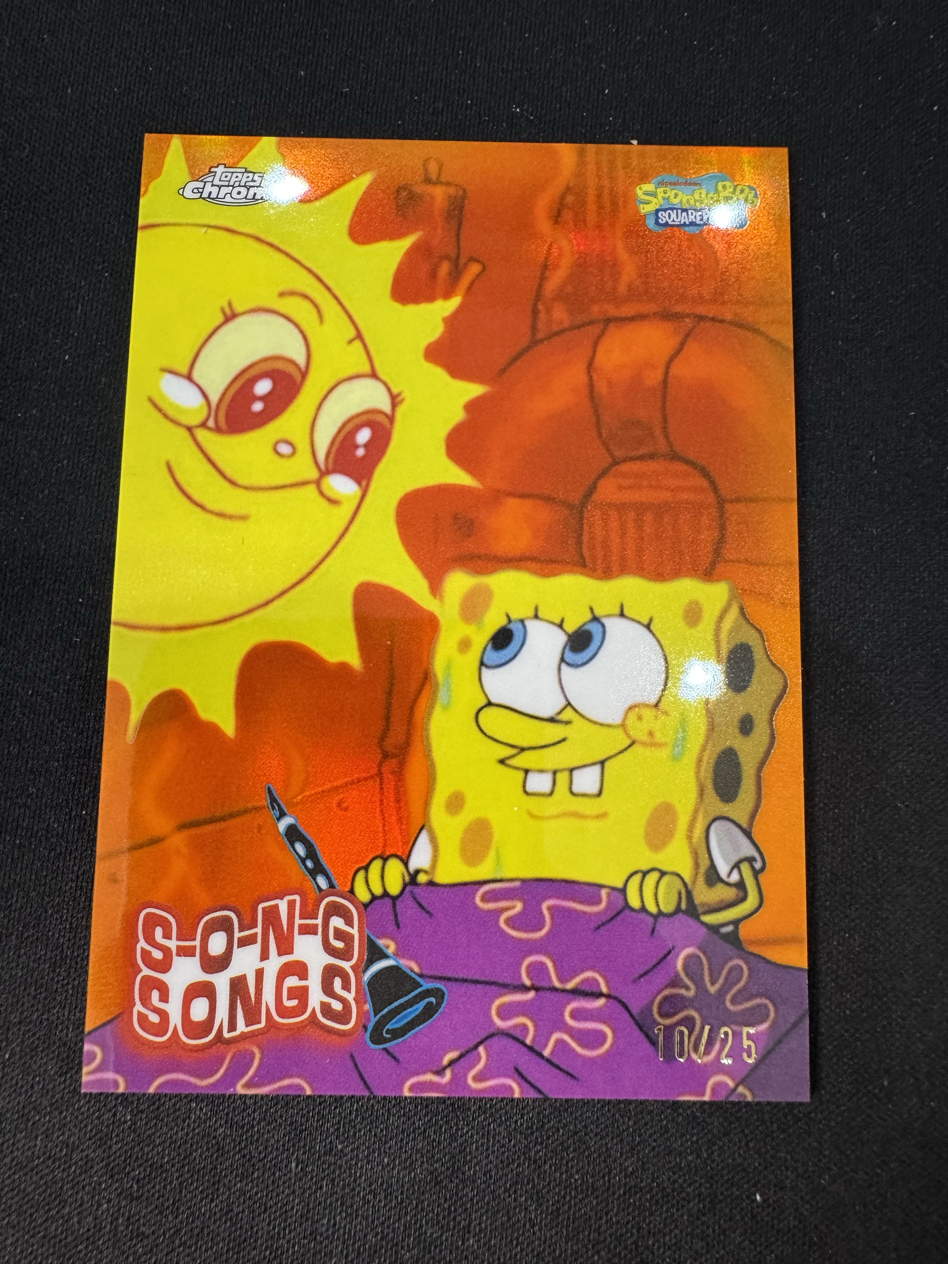 2025 Topps Chrome SpongeBob 海绵宝宝 元年 TC 【科科 尤因】Song Songs S-12 与派大星最好的一天 橙折 /25编 大比例 特卡 最贵选图之一 卡品如图