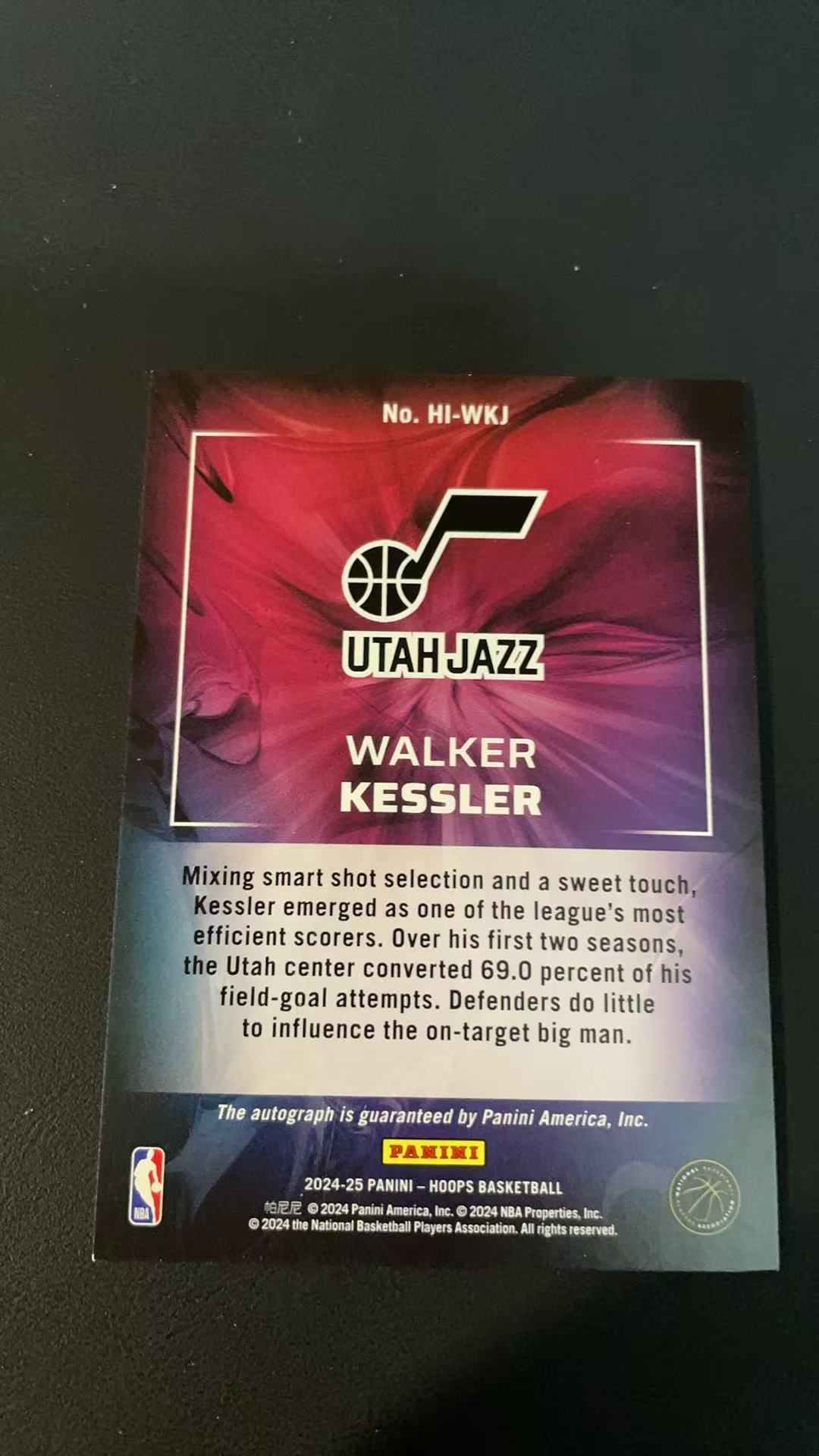 2024-25 Panini NBA Hoops Walker Kessler 【极地拍卖】【1】爵士队 凯斯勒 ink签字卡 卡品如图