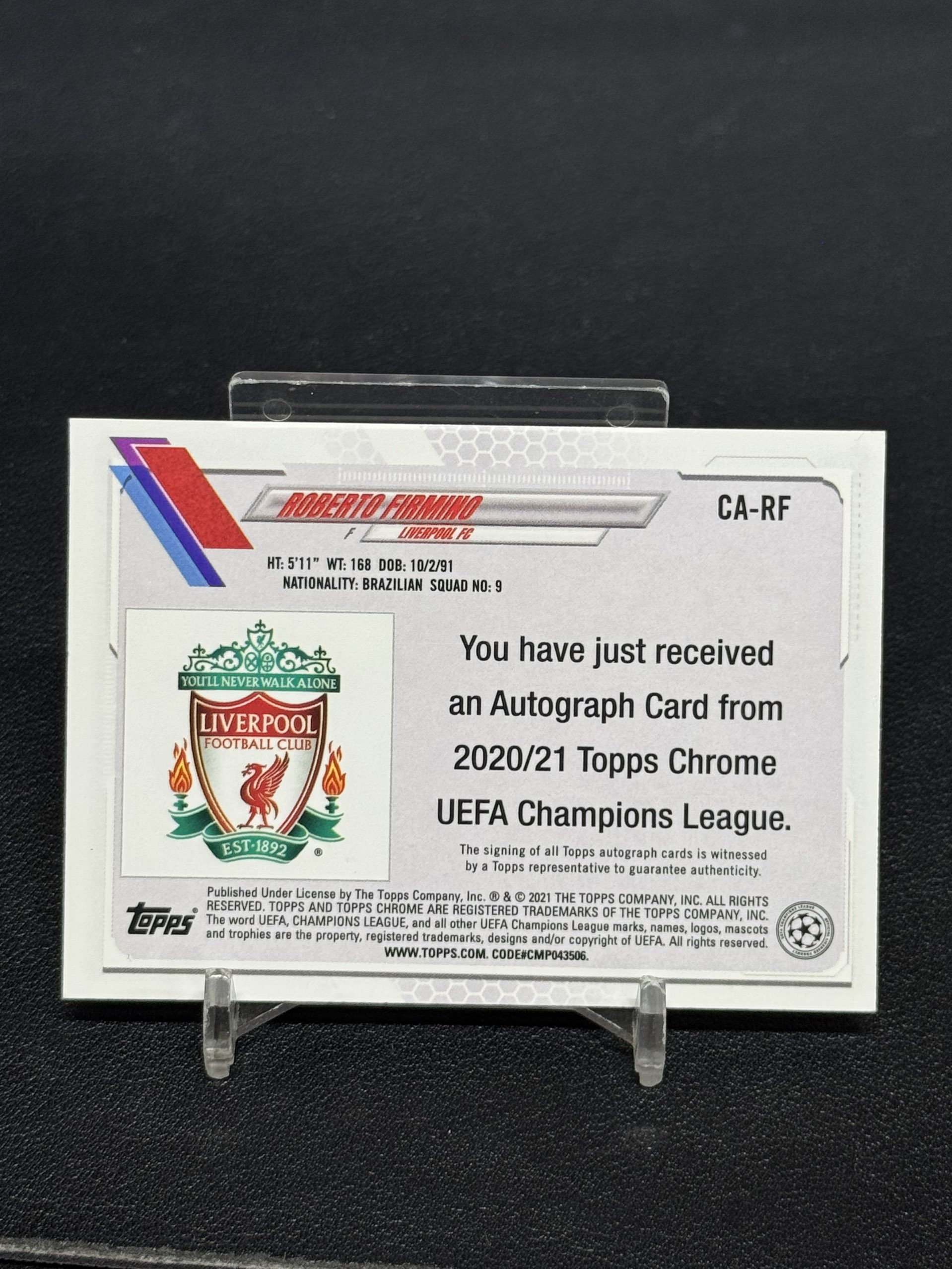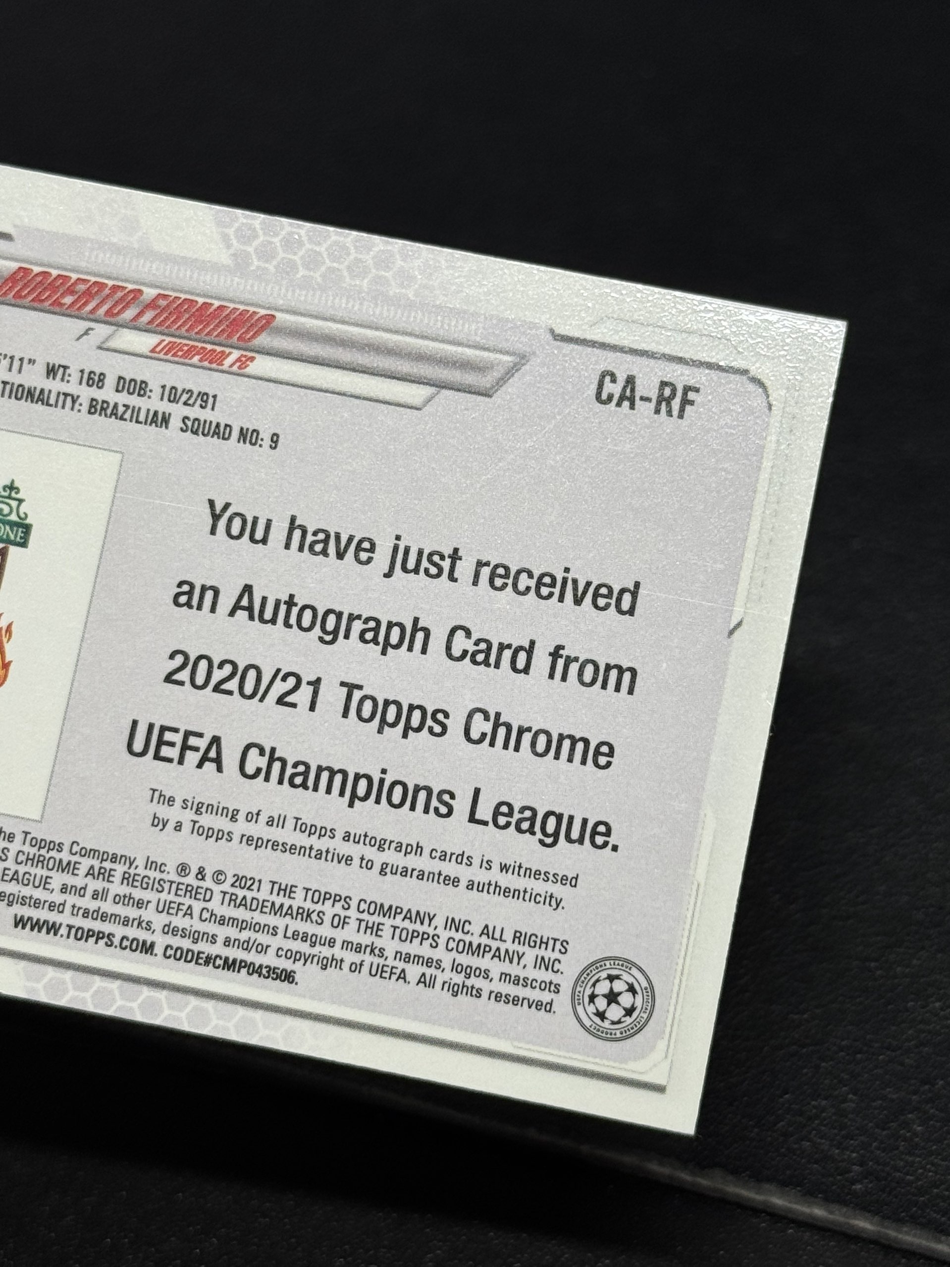 【浩行拍卖 截标预付82%】2021 topps chrome roberto firmino 利物浦 欧冠 菲尔米诺 银折 折射 签字 专收必备 瑕疵看图「ellie123」1015D05裊