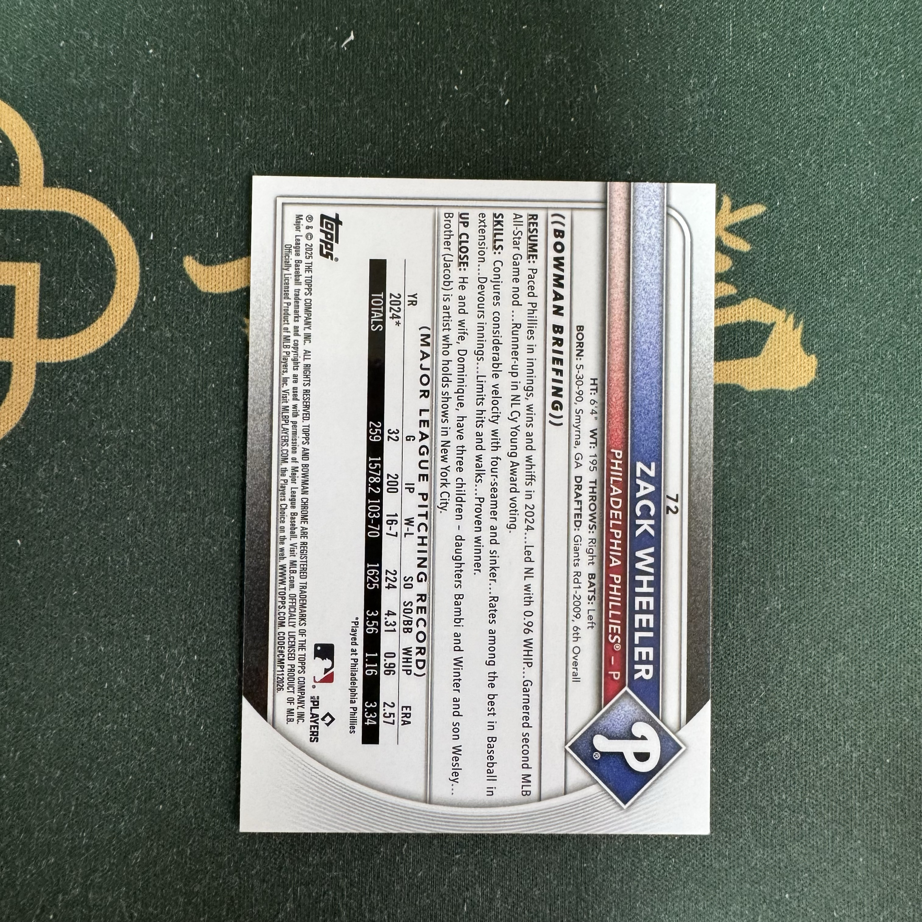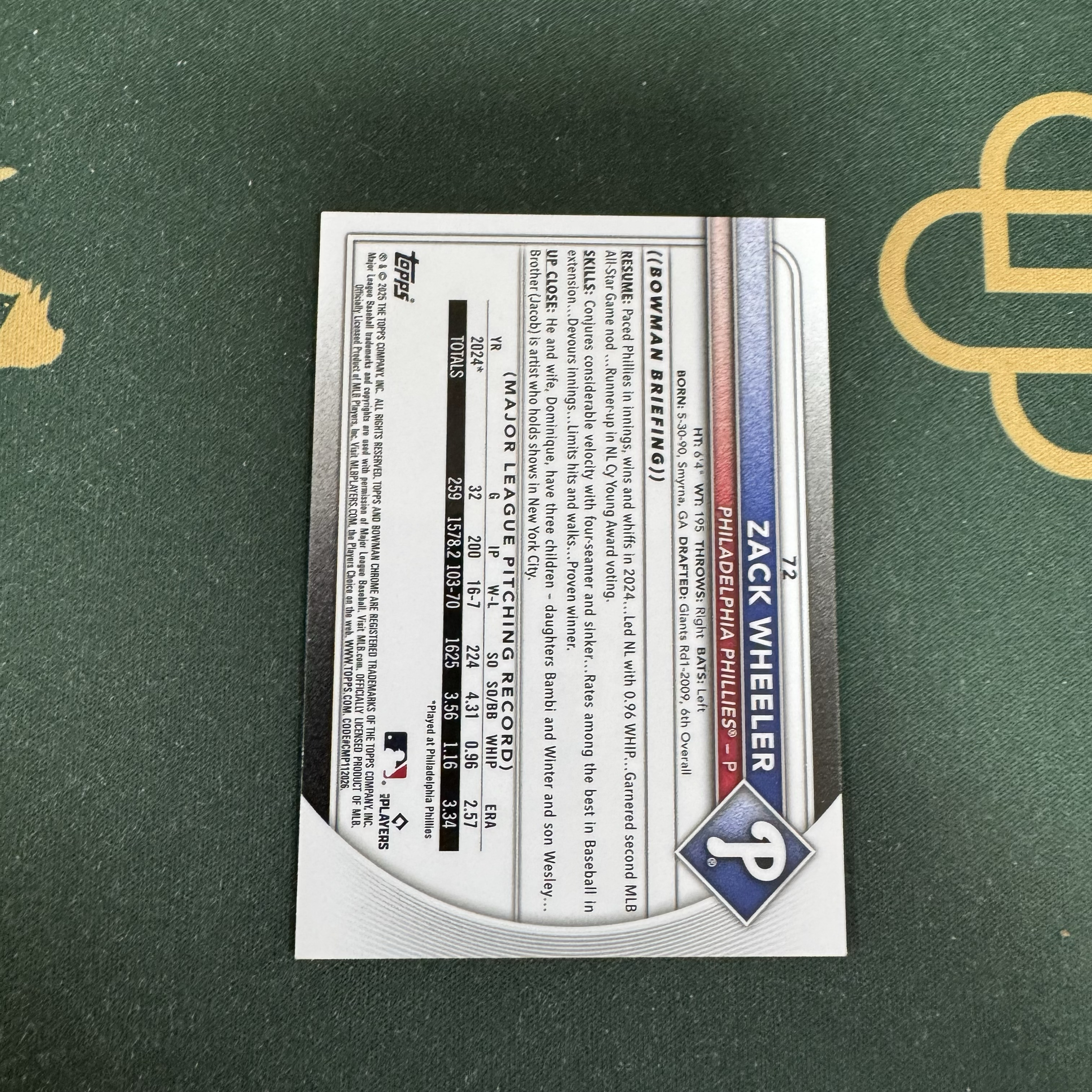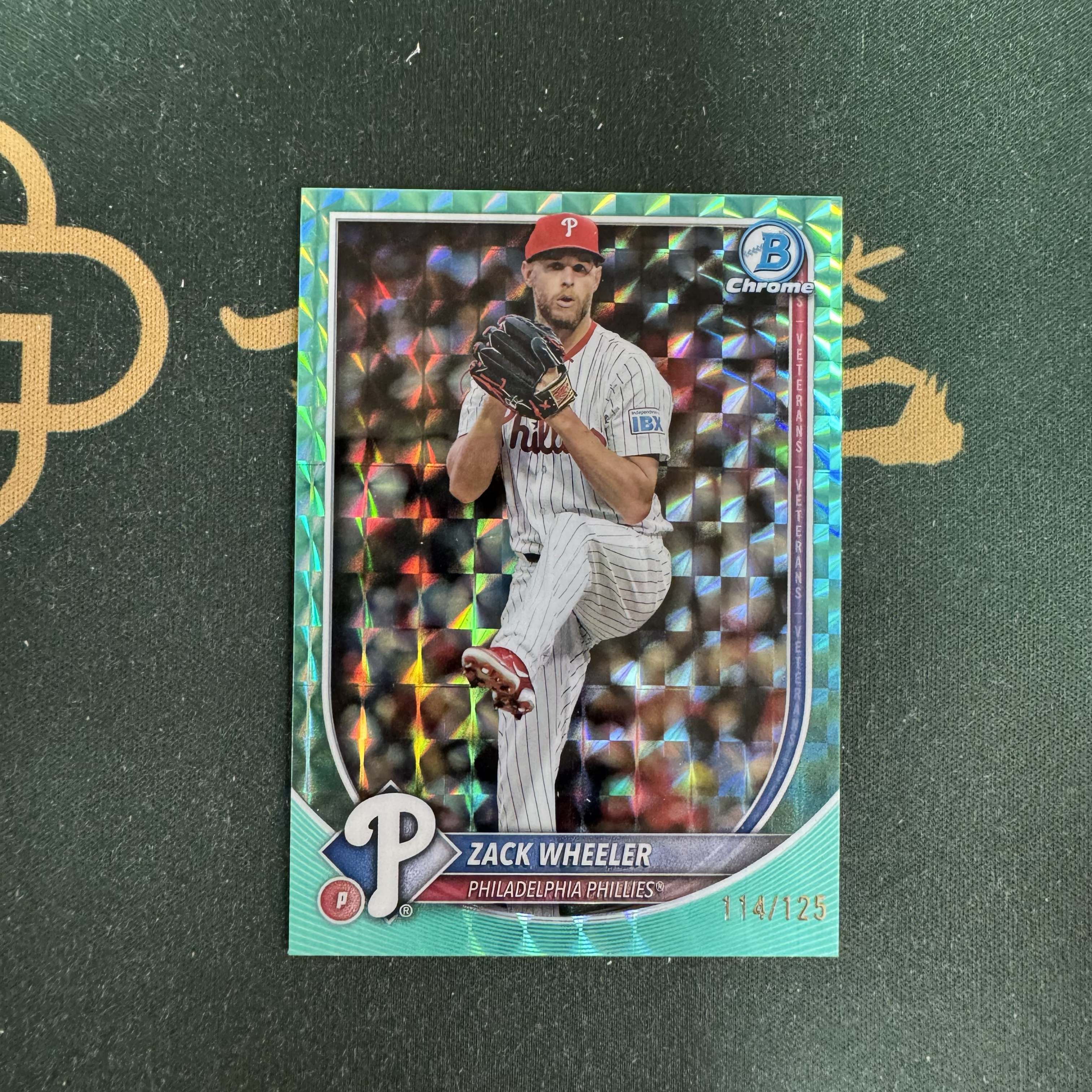 2025 Topps Chrome Zack Wheeler 【十三笔】Chrome Bowan 扎克 惠勒 费城人队 125编 青棱镜折 卡品如图(YY)