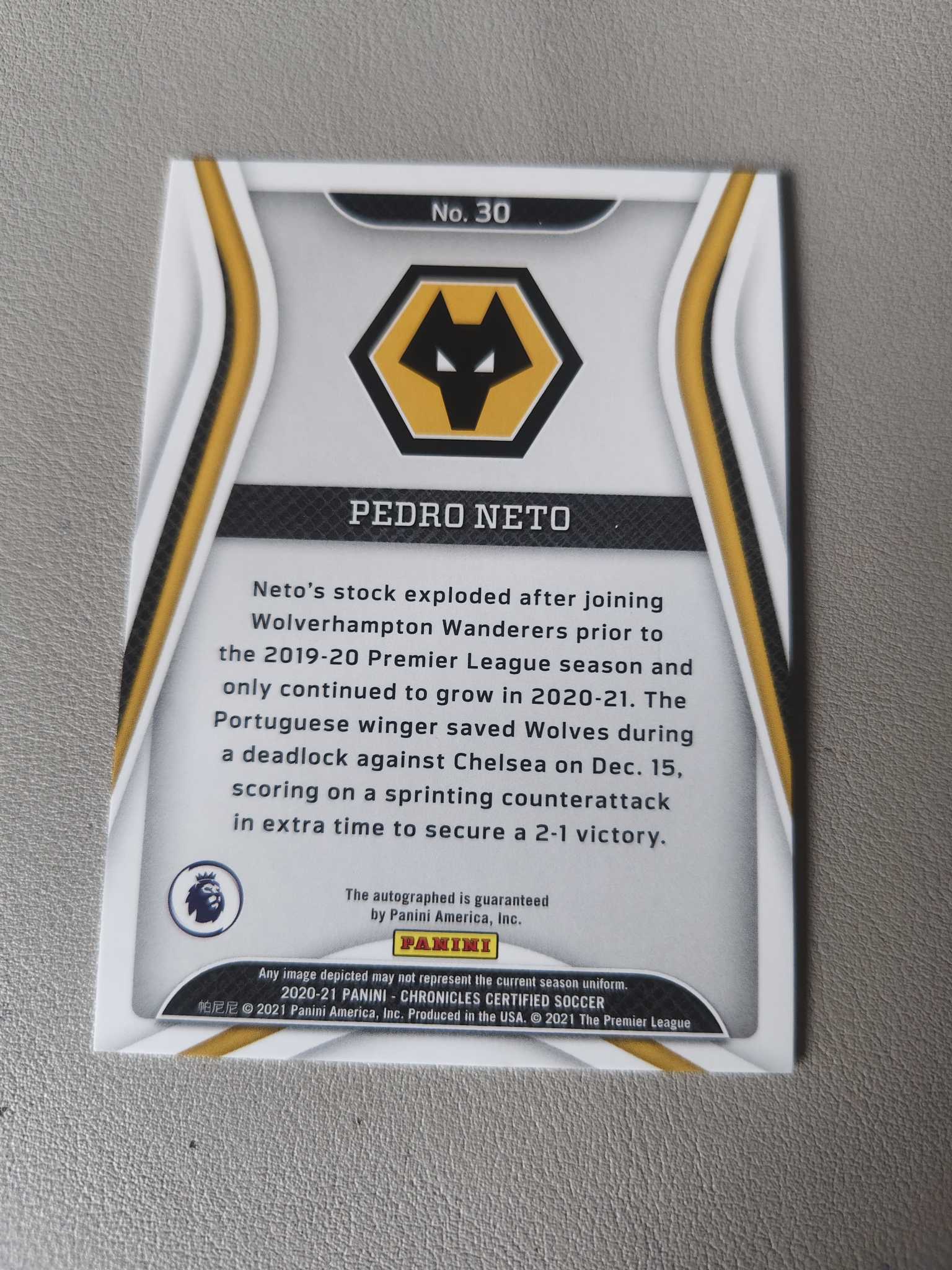 【佩妮拍卖】2020-21 Panini chronicle 英超编年史 Pedro Neto 佩德罗 内托 狼队 签字 06/47编 卡品如图 拍前请阅读描述 墨谈1015