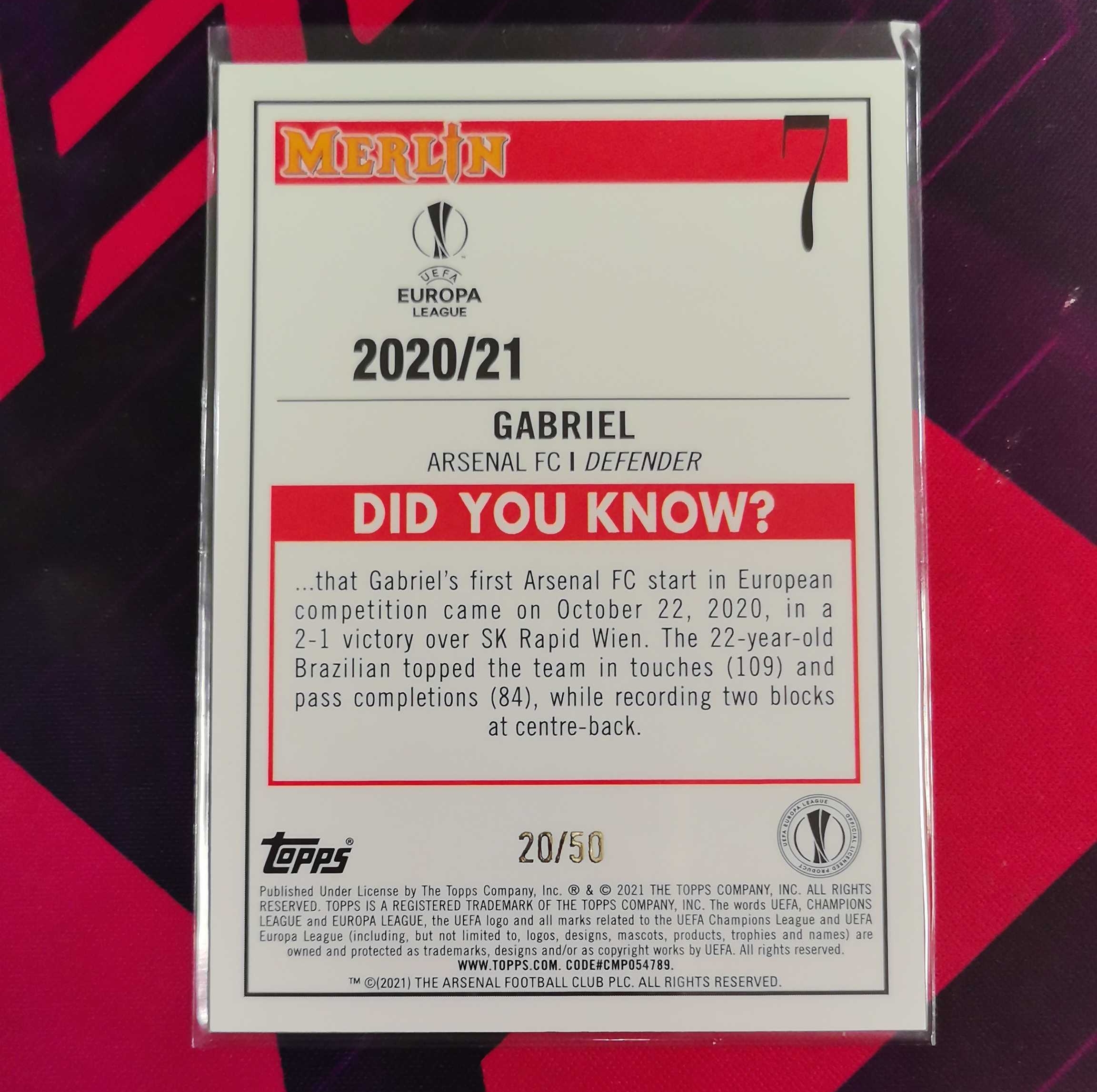 2021 Topps Merlin chrome Gabriel 阿森纳 加布里埃尔 后防中坚 梅林系列 正base金折 20/50 实卡漂亮 专收必备
