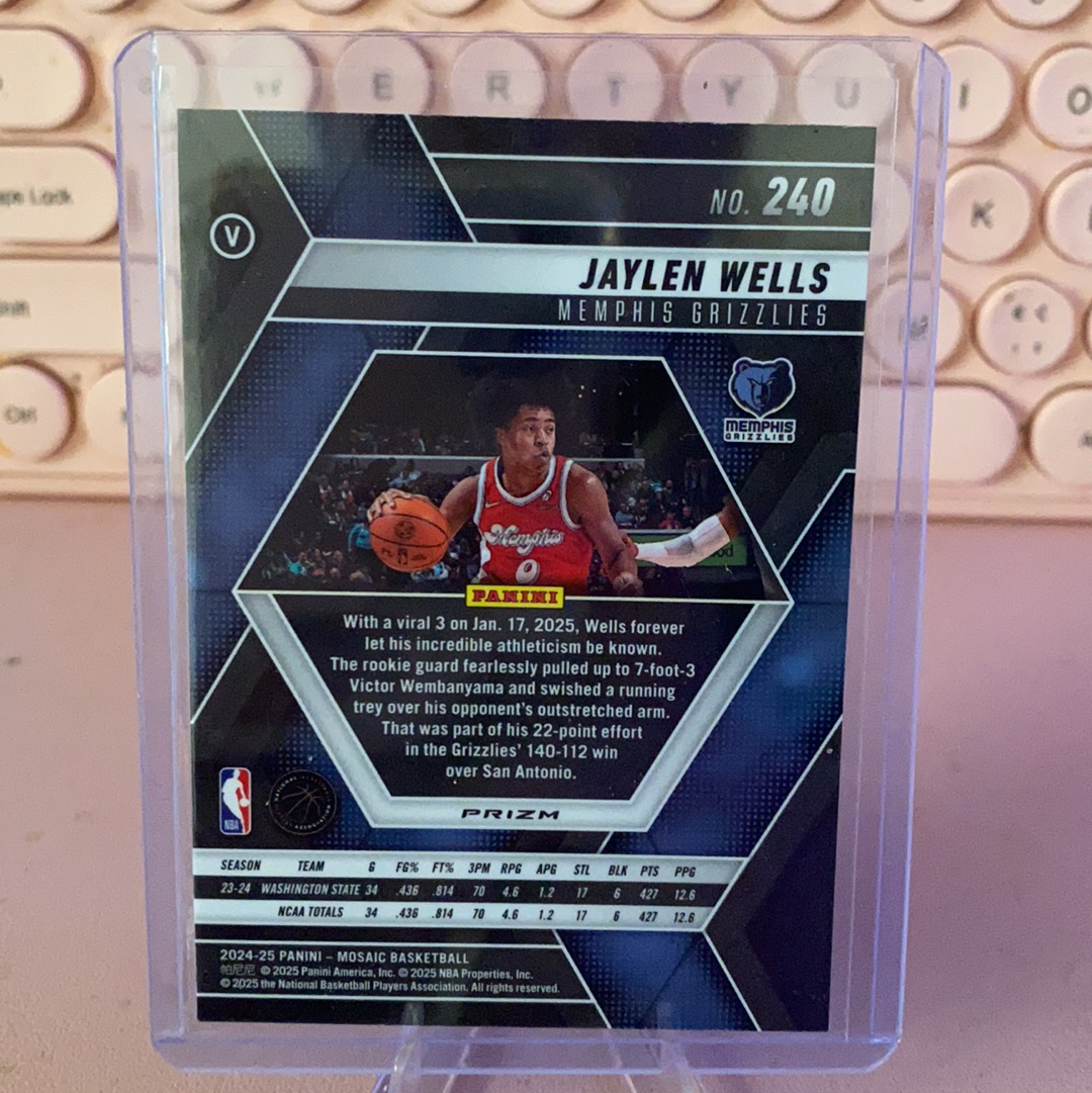 2024-25 Panini Mosaic Jaylen Wells RC NBA 马赛克 杰伦 威尔斯 孟菲斯灰熊 新秀 银泡泡折 收藏必备
