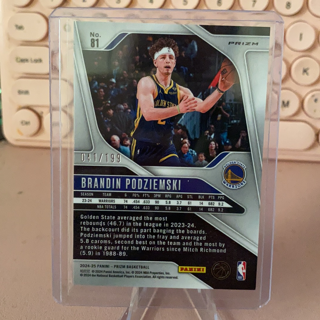 2024-25 Panini Prizm Brandin Podziemski Prizm 勇士 布兰丁 波杰姆斯基 蓝折 199编 实卡精美 卡品如图