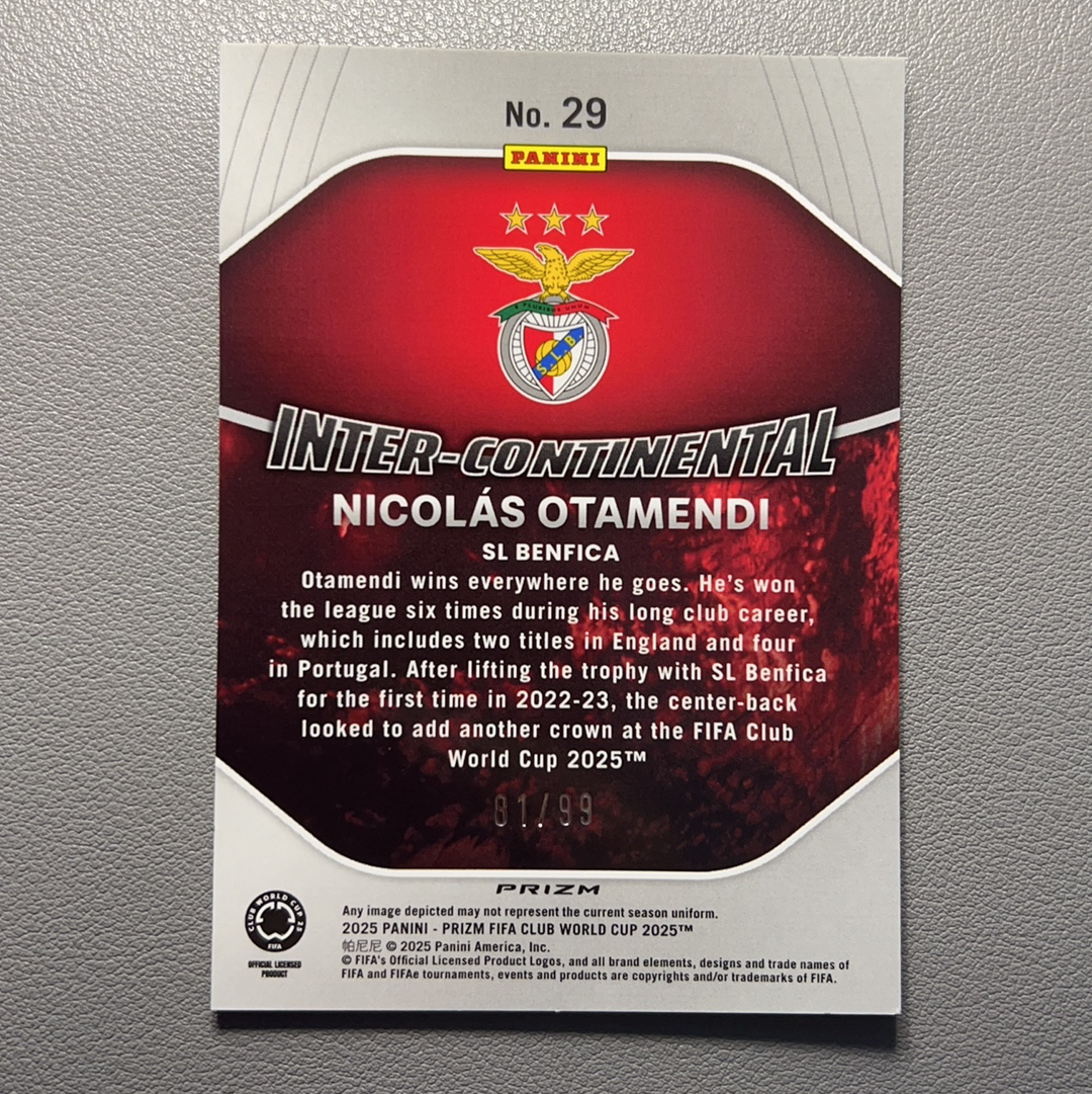 2025 Panini Prizm FIFA Club World Cup世俱杯 Nicolás Otamendi 奥塔门迪 本菲卡 队长 洲际之星特卡 81/99编 蓝碎冰折 阿根廷 卡品如图