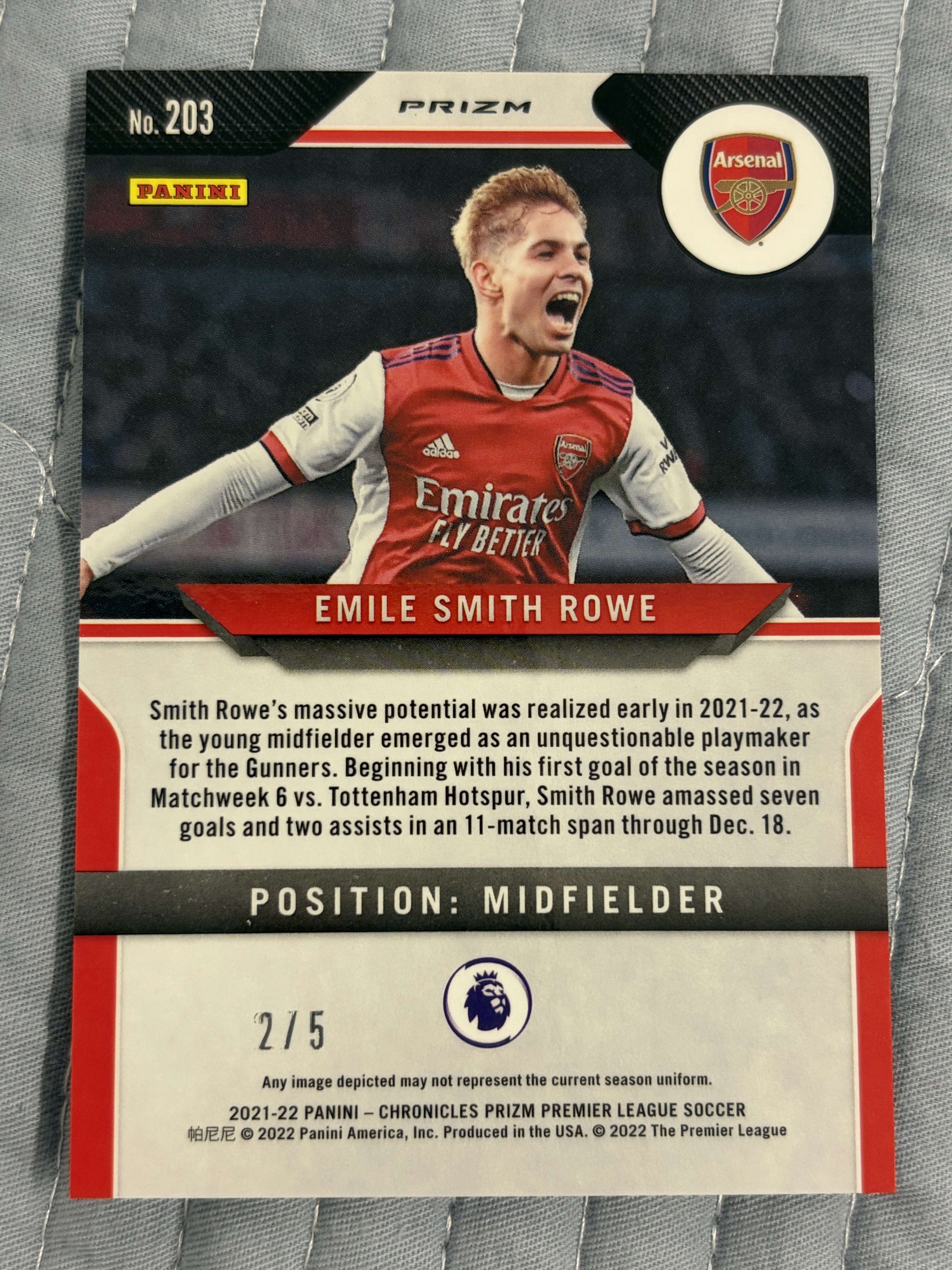 2021-22 Panini Chronicles Emile Smith Rowe /5编 英超编年史 prizm插入 史密斯 罗 绿折 低编 乘法同背 阿森纳 英格兰 萨卡 赖斯 选图帅气 富勒姆