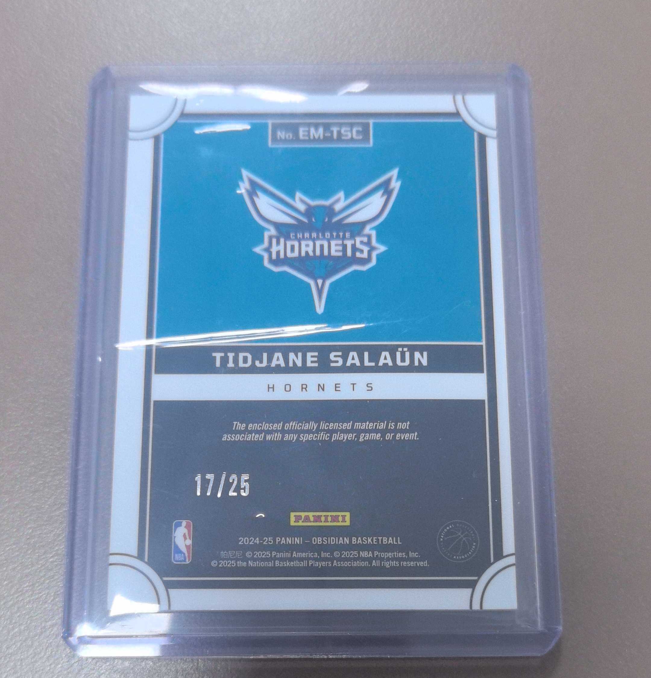 2024-25 Panini Obsidian Tidjane Salaun RC 黑曜石系列 黄蜂队好秀 萨隆 17/25 编 大窗三色秋衣切割卡 未来可期 收藏佳品