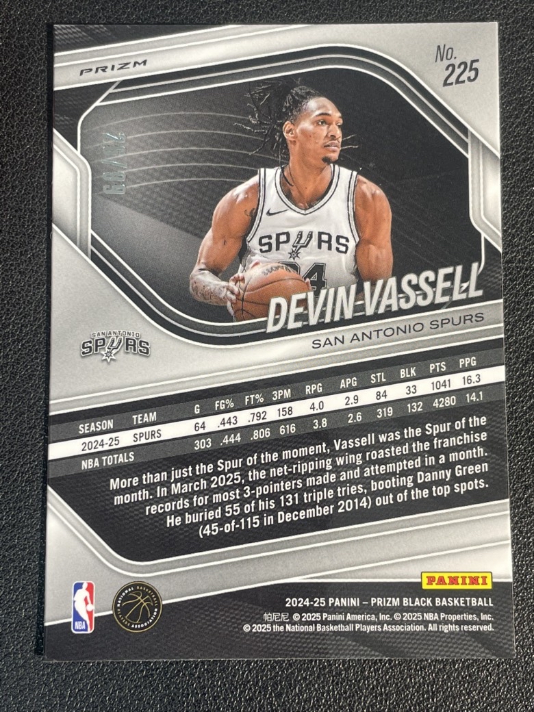 2024-25 Panini Prizm Black Devin Vassell 519 德文 瓦塞尔 马刺 折射 紫折 99编 实卡精美 卡品如图 尖叫代拍 pink