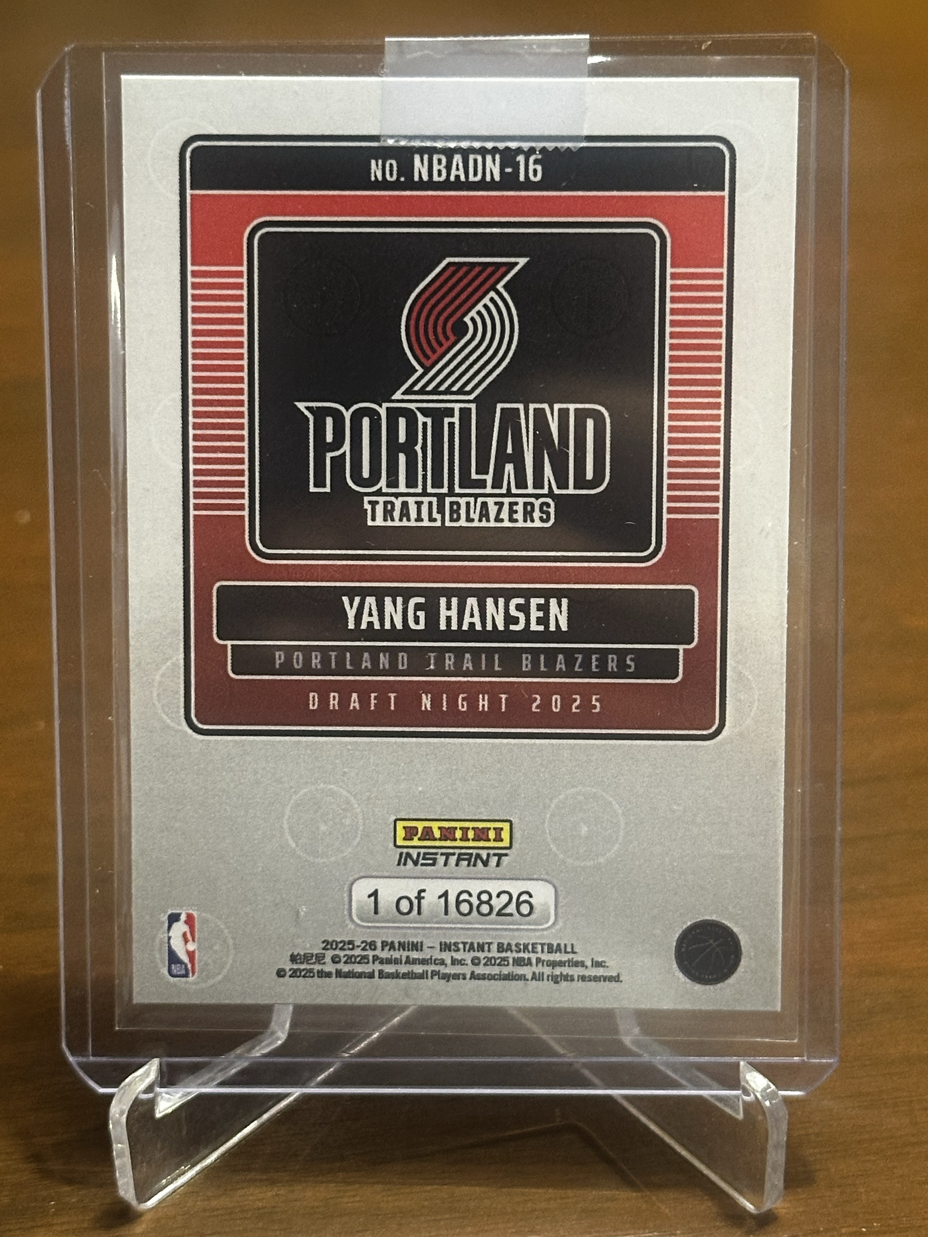 2025 Panini Instant 杨瀚森 RC 杨瀚森 新秀 瞬时系列 16826编 选秀夜定妆照选图 开拓者 投资必赚 卡品如图