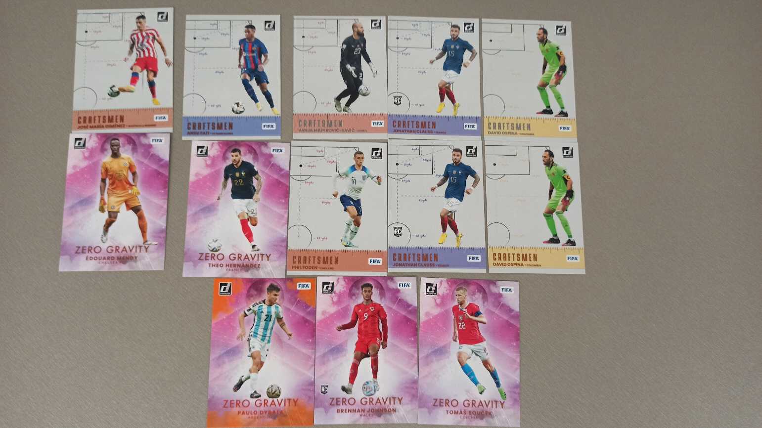 足球卡 13张 Panini Donruss 2022 折射 特卡 Dybala Ansu Fati Mendy Foden 卡品如图 收藏必备 卡默认都有瑕疵白边 介意勿拍