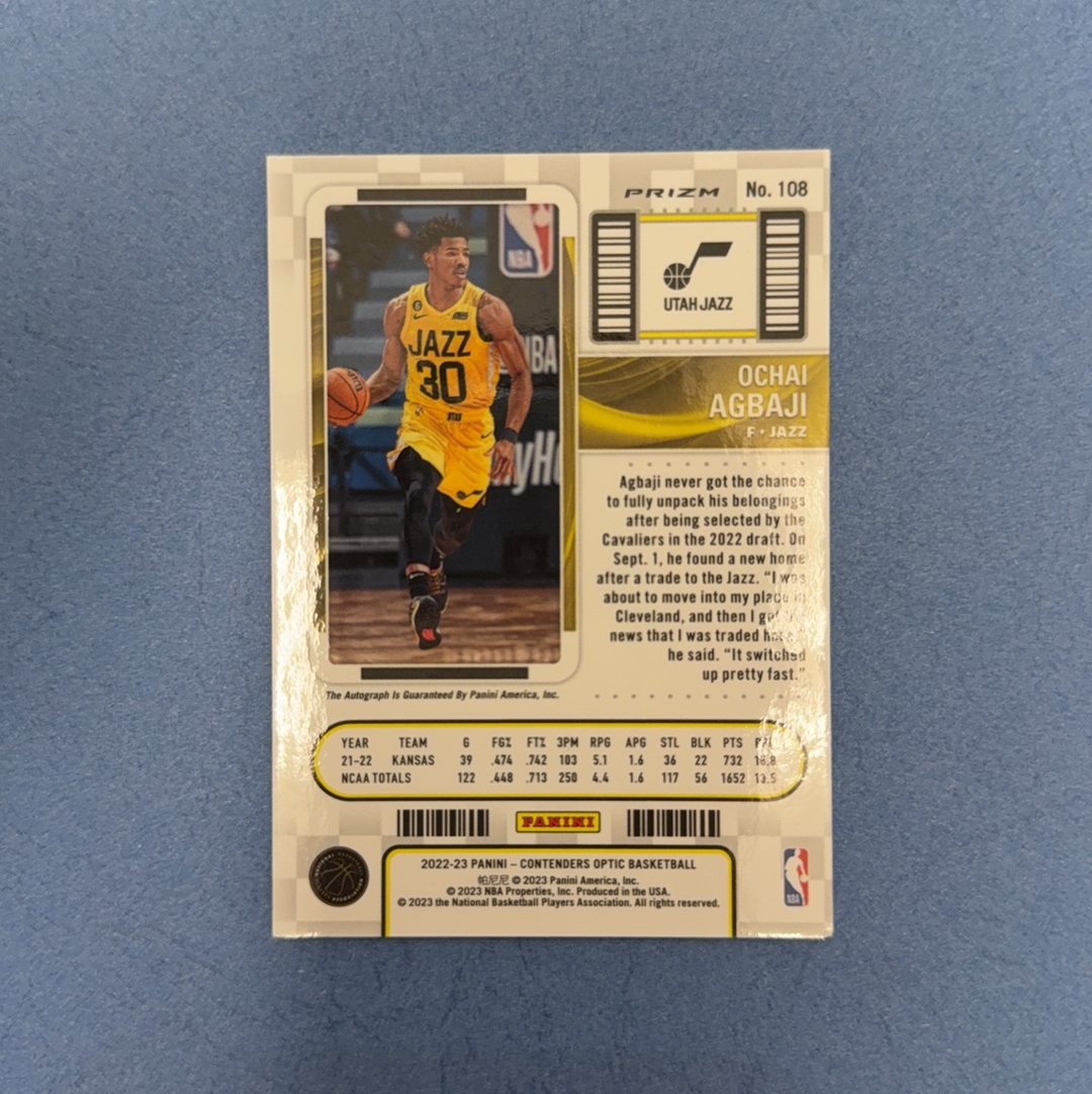 2022-23 Panini Contenders Ochai Agbaji RC 球票系列 爵士 阿巴吉 阿巴基 rc新秀 银折 卡签 签字