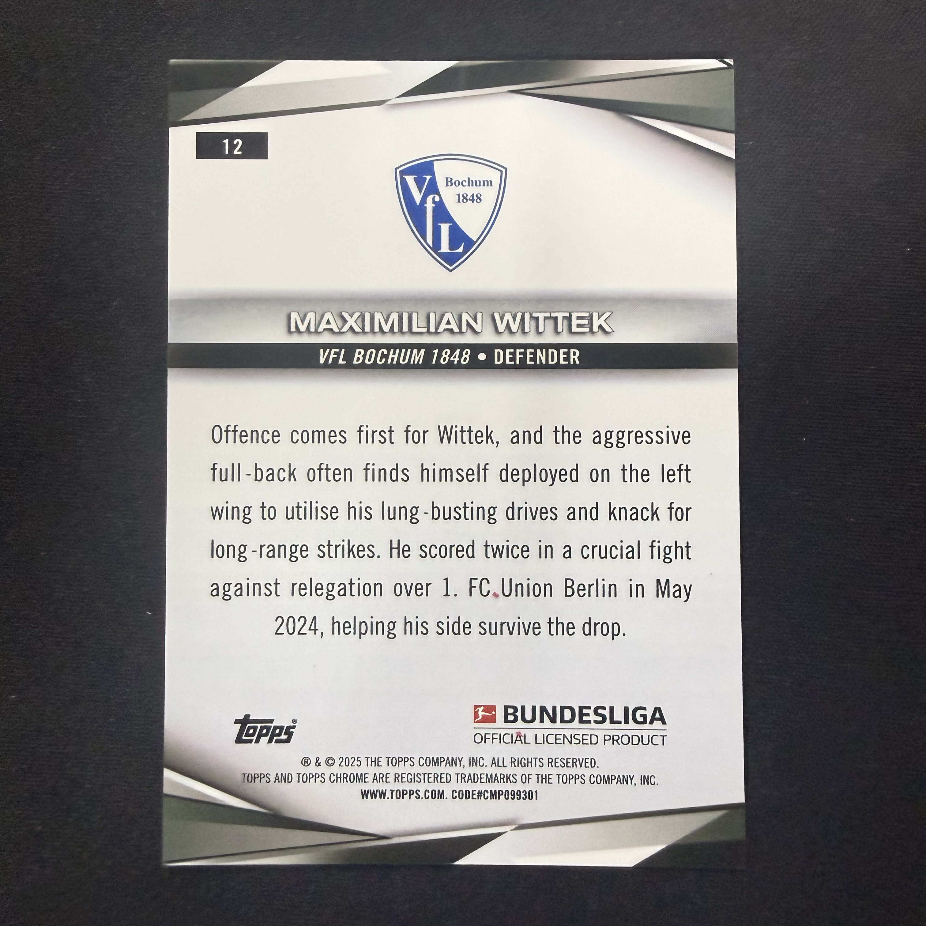 2024-25 Topps Chrome MAXIMILIAN WITTEK 【SC拍卖】德甲 蓝宝石 维特克 波鸿 37/99编 绿碎冰 收藏必备(阿晶)