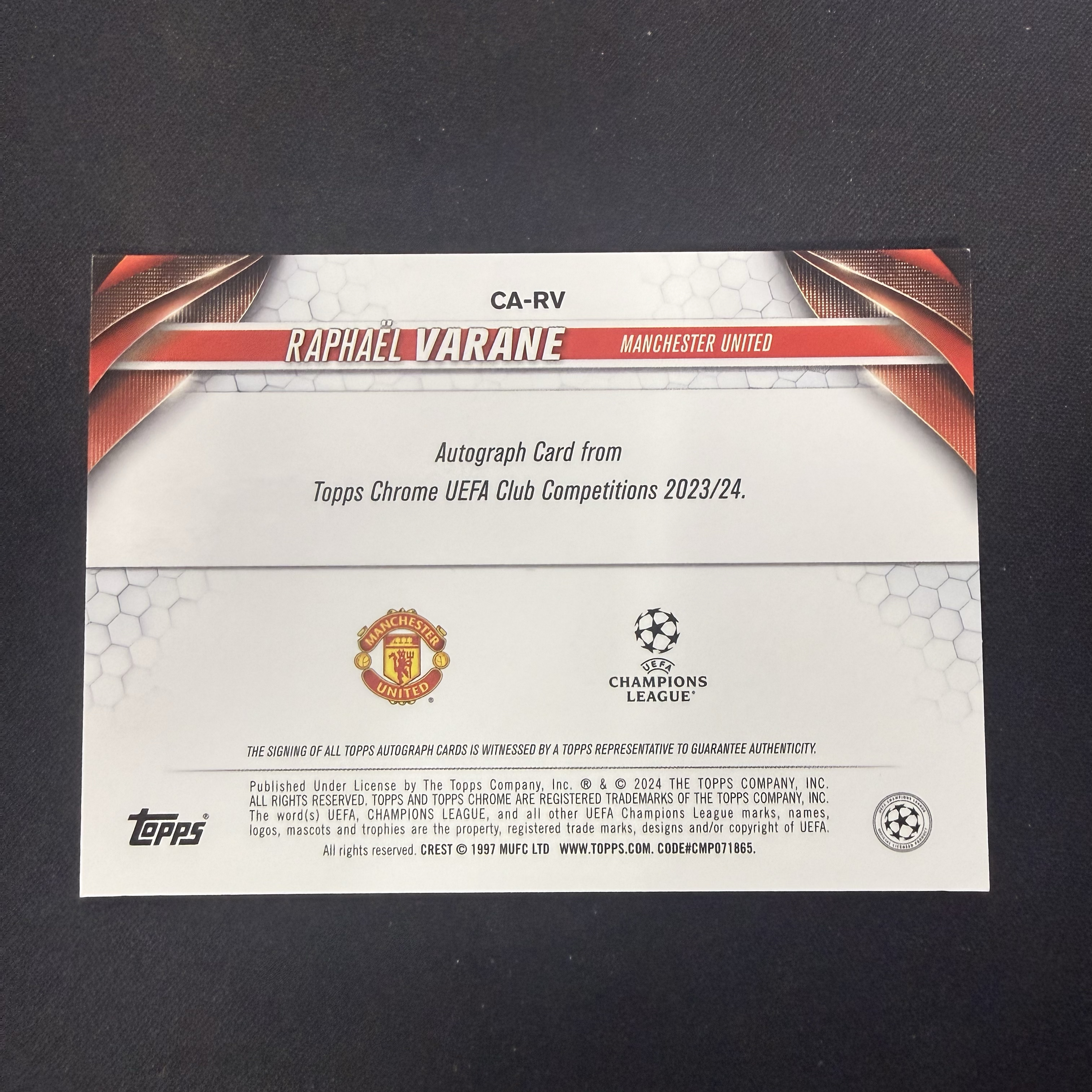 2023-24 Topps Chrome Raphael Varane 【SC拍卖】tc 瓦拉内 曼联 青熔岩 签字 收藏必备(david徐)