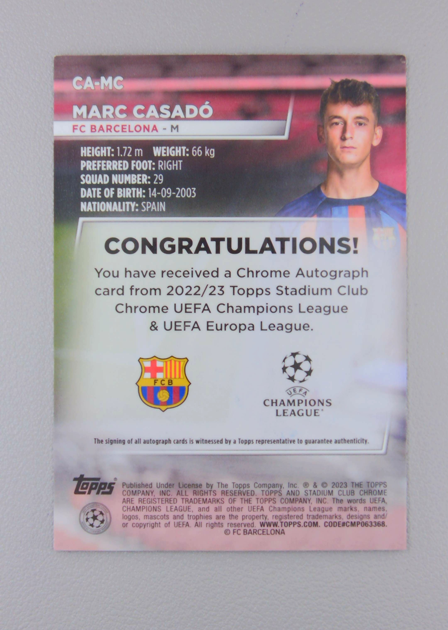 2023 Topps stadium club Marc Casado RC 马克 卡萨多 巴塞罗那 巴萨 欧冠 新秀 签字 竞技场 瑕疵 战神无双拍卡 (可以冬眠吗)