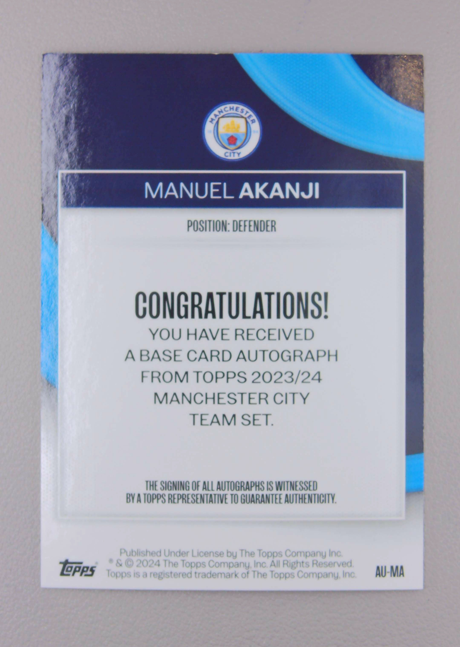 2024 Topps Manchester City Manuel Akanji 曼努埃尔 阿坎吉 曼城 签字 折射 3/5编 超低编 战神无双拍卡 (#10.15syyy)