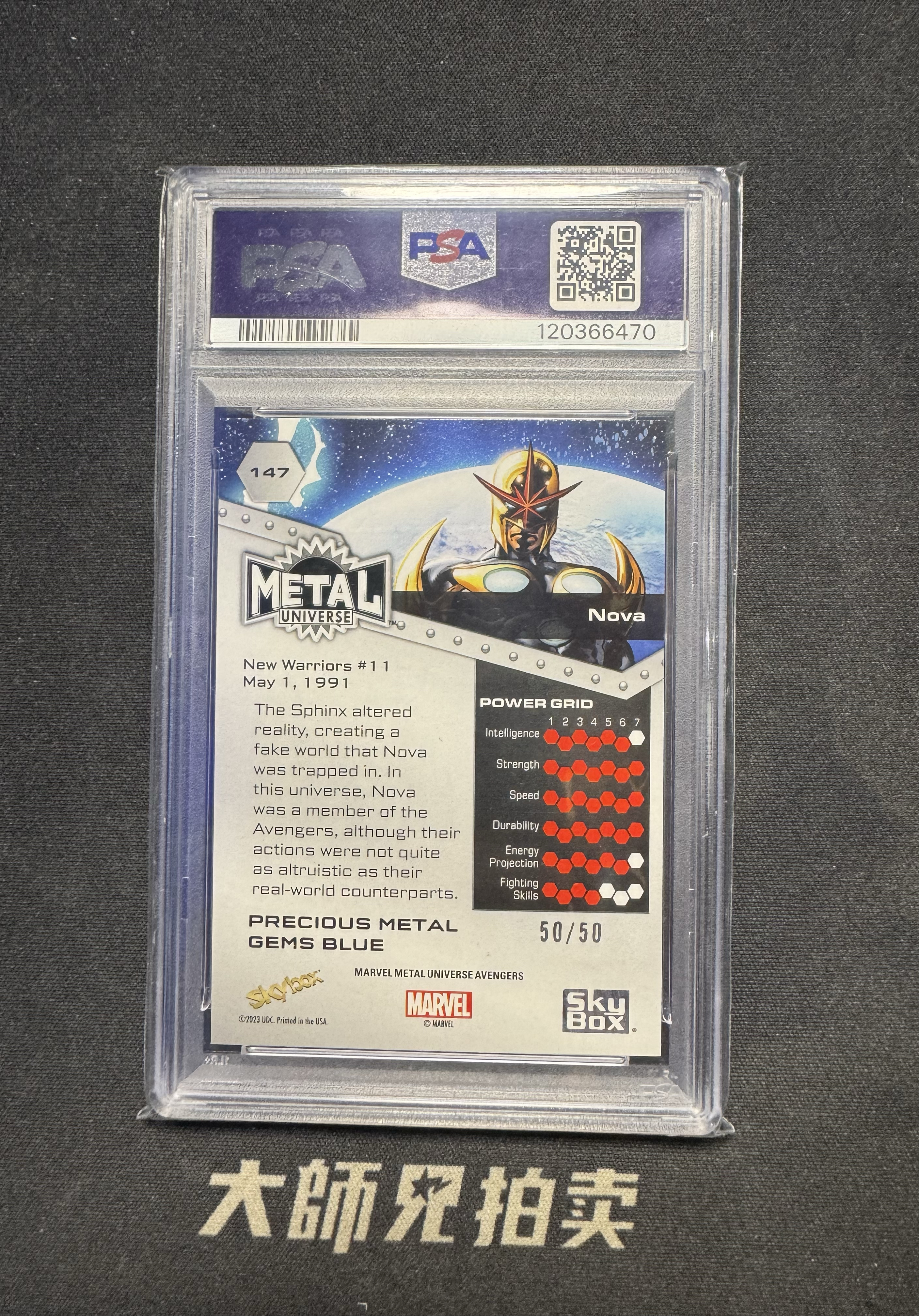 2024 SkyBox Marvel (MCU) NOVA 【大师兄拍卖】漫威 复仇者联盟 金属宇宙 新星 /50编 蓝宝石 蓝折 psa7分-jinx-