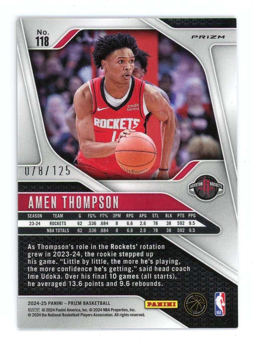 2024-25 Panini Prizm Basketball Amen Thompson Base Blue Ice Przim #'ed 078/125