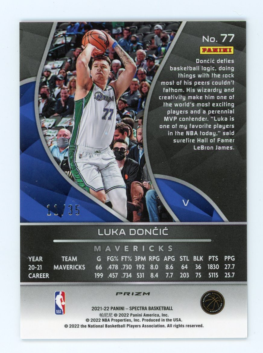 2021-22 Panini Spectra Basketball Luka Doncic Base Variations Astral Prizm #'ed 11/35