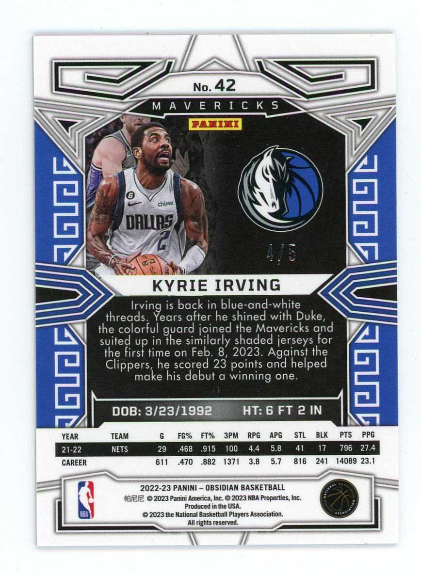 2022-23 Panini Obsidian Basketball Kyrie Irving Base Electric Etch Red #'ed 4/5