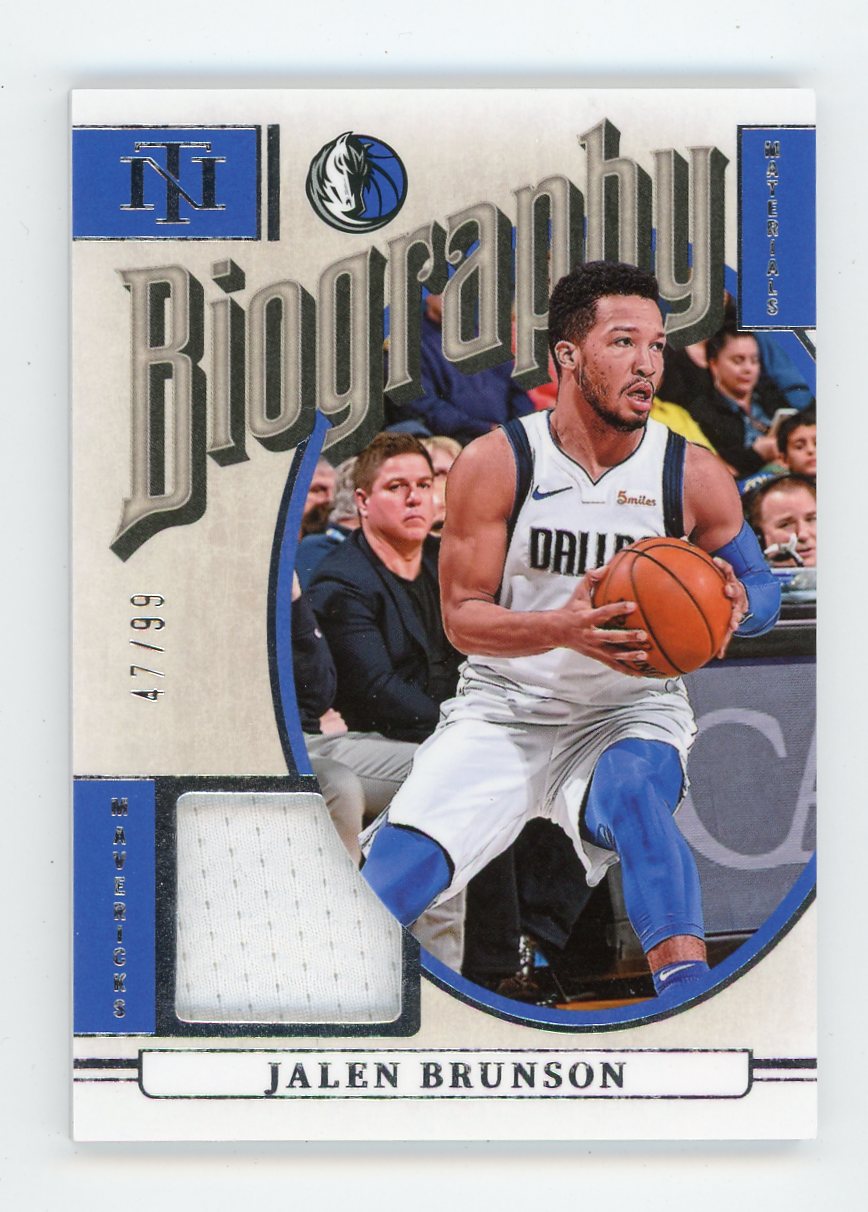 2024-25 Panini National Treasures Basketball Jalen Brunson Biography Materials Jersey #'ed 47/99
