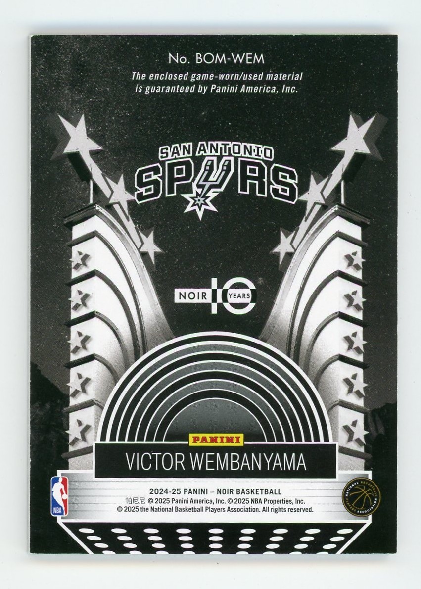2024-25 Panini Noir Basketball Victor Wembanyama Box Office Memorabilia Jersey #'ed 20/99